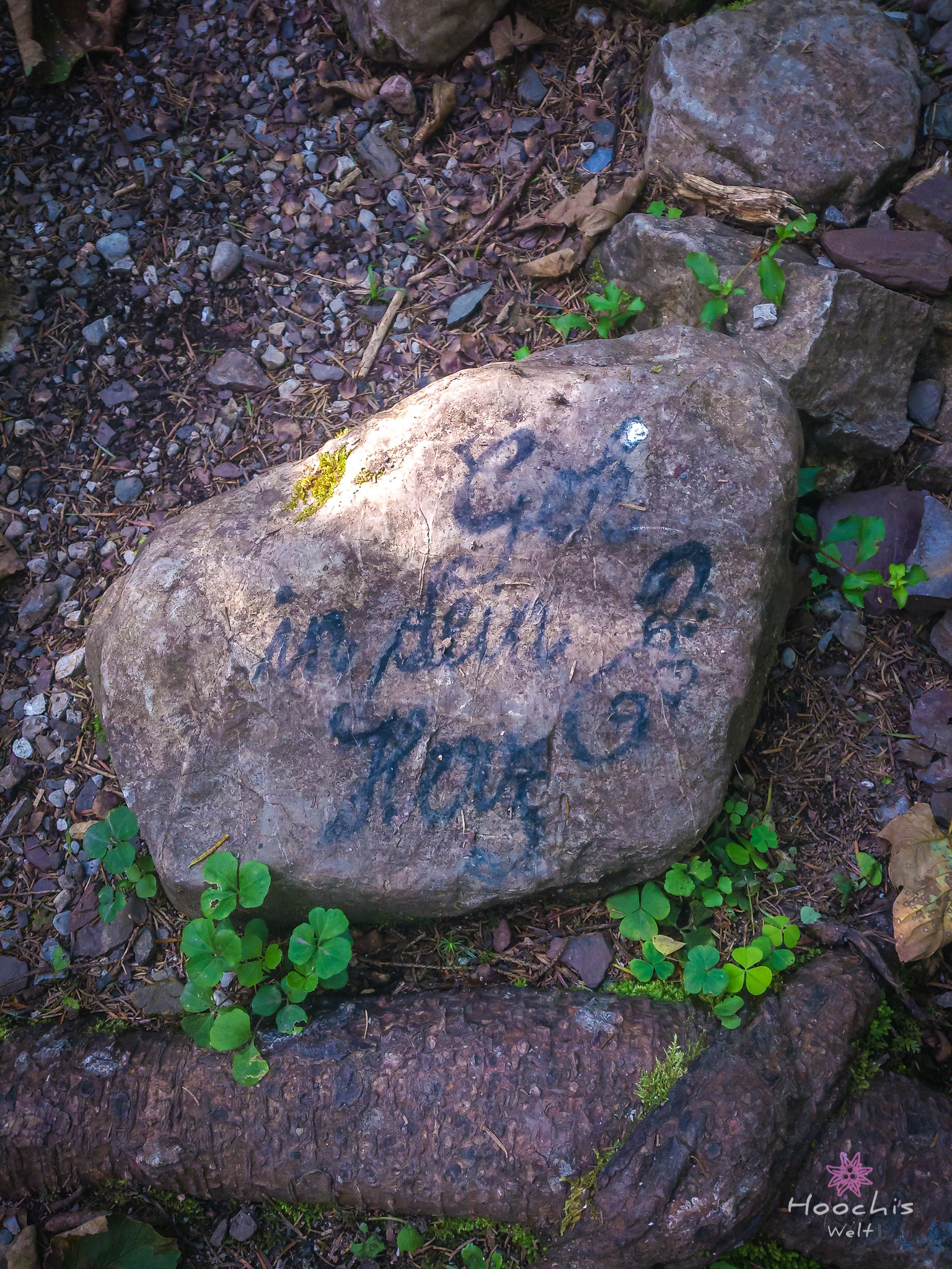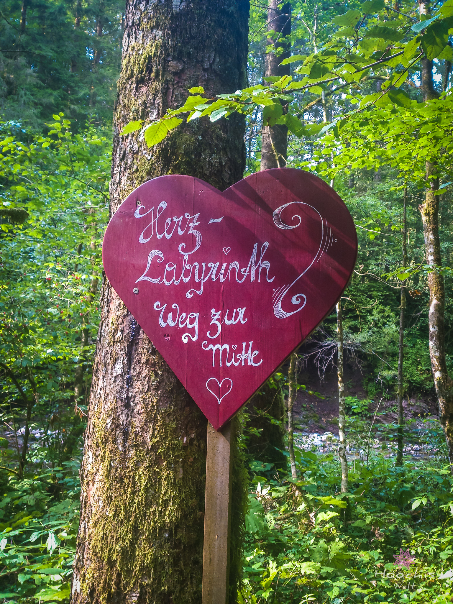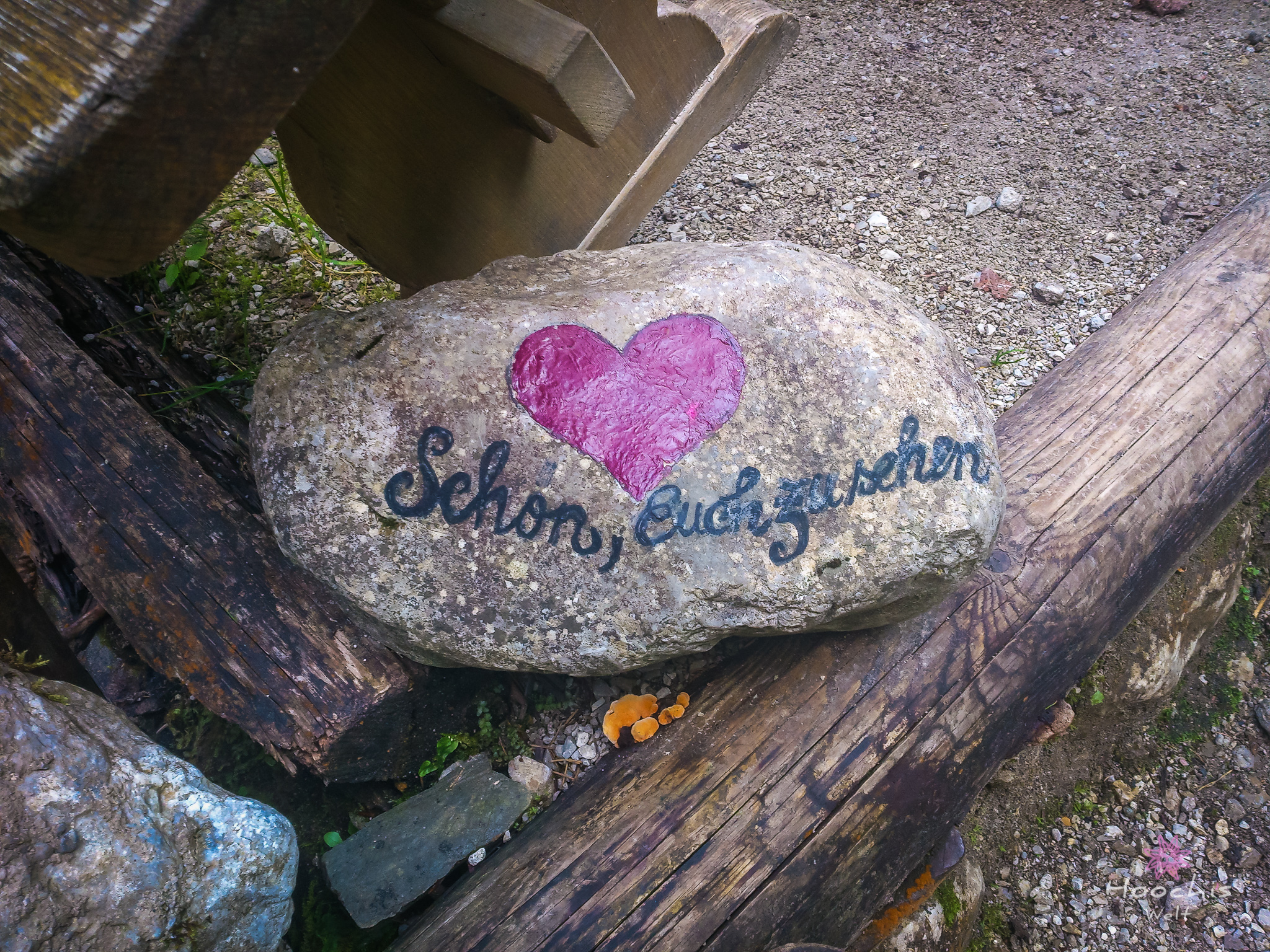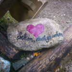Nachdem wir uns einen Eiskaffee gegönnt hatten, liefen wir an den Startpunkt des Mühlenrundweges. Da fielen mir auf Steinen gemalte kleine Herzen auf. So kam es dazu, dass Flo den Mühlenrundweg lief und ich den Herzerlweg. 😉 Gut, dass es der selbe Weg war.