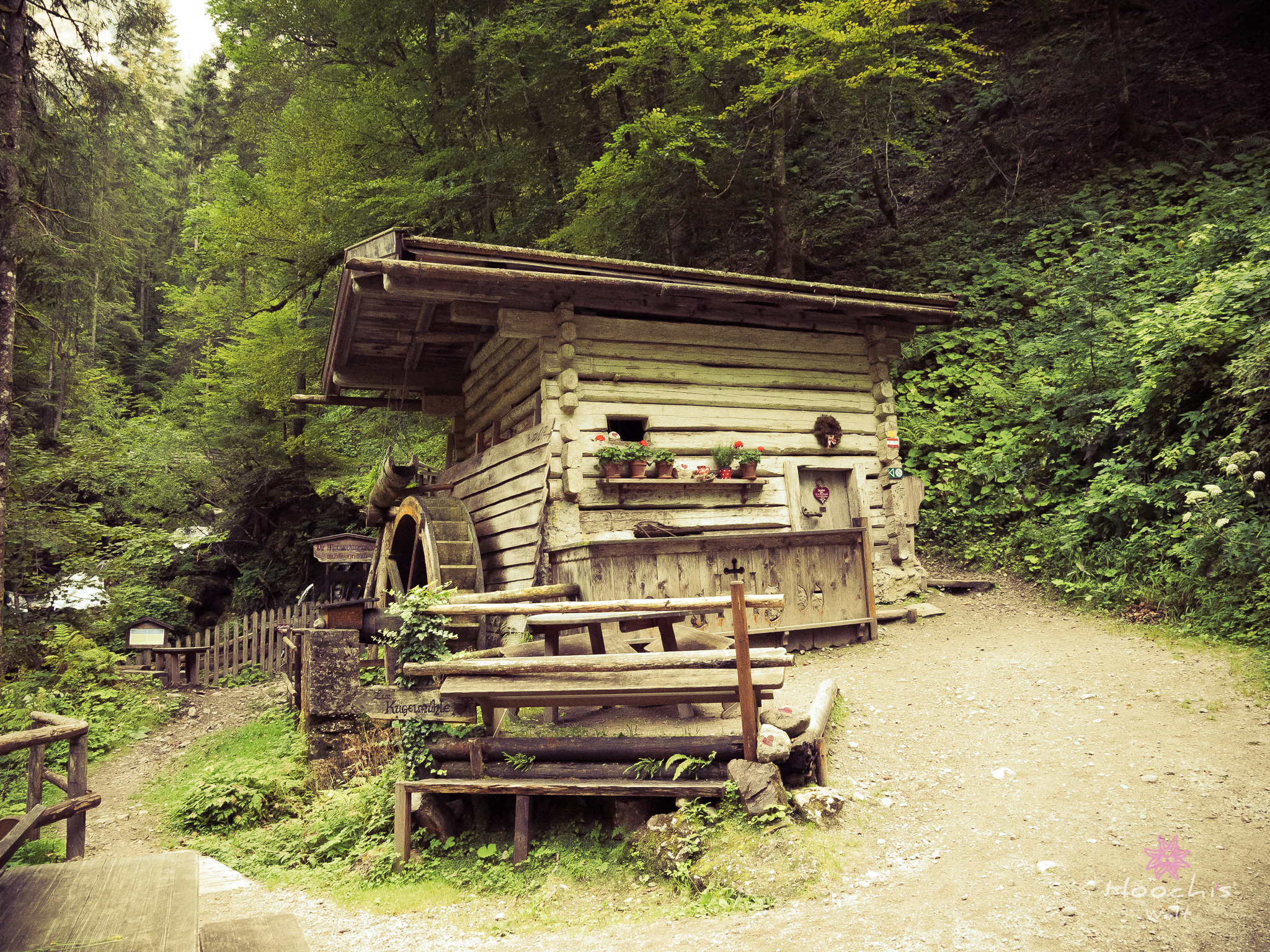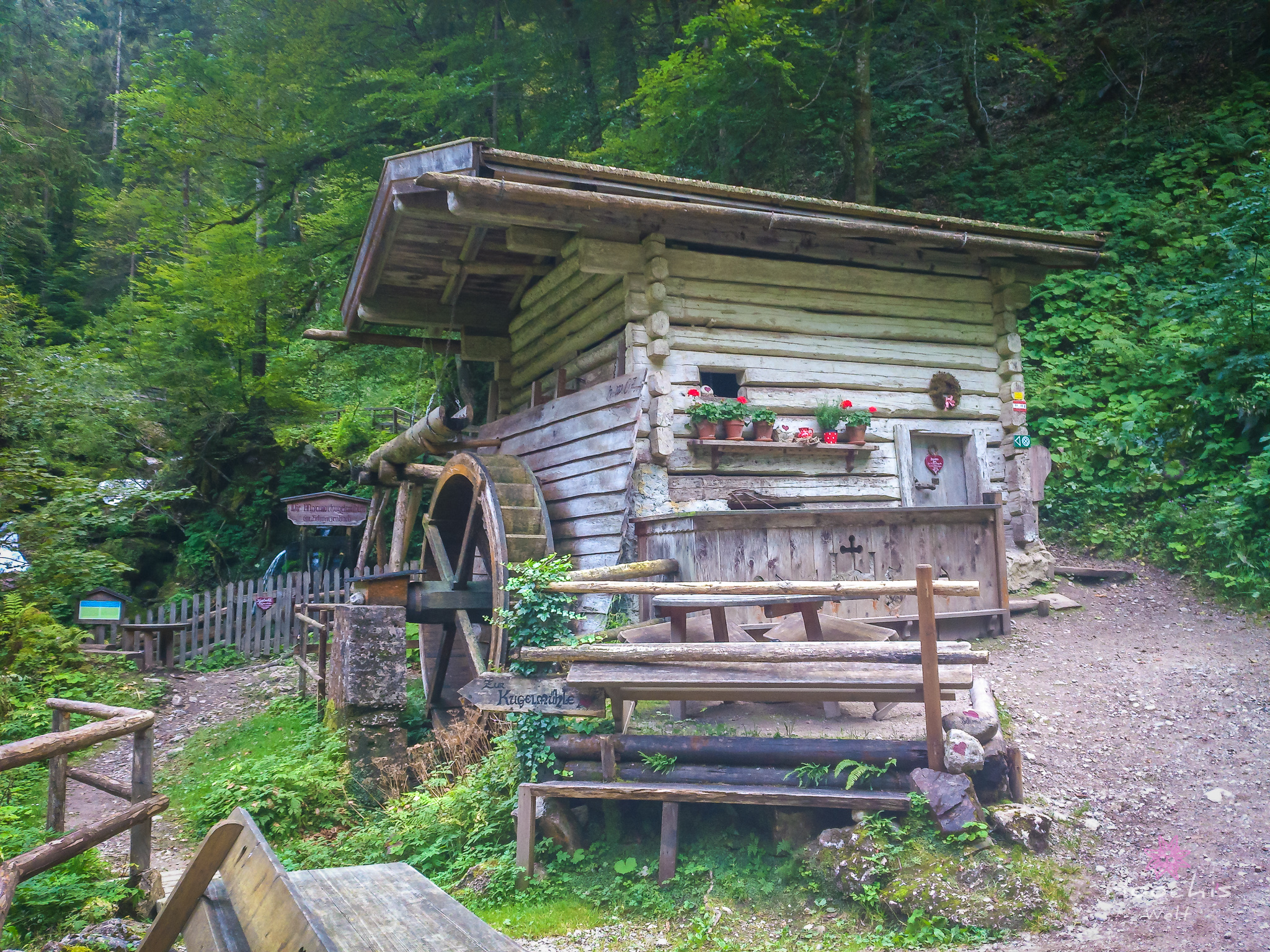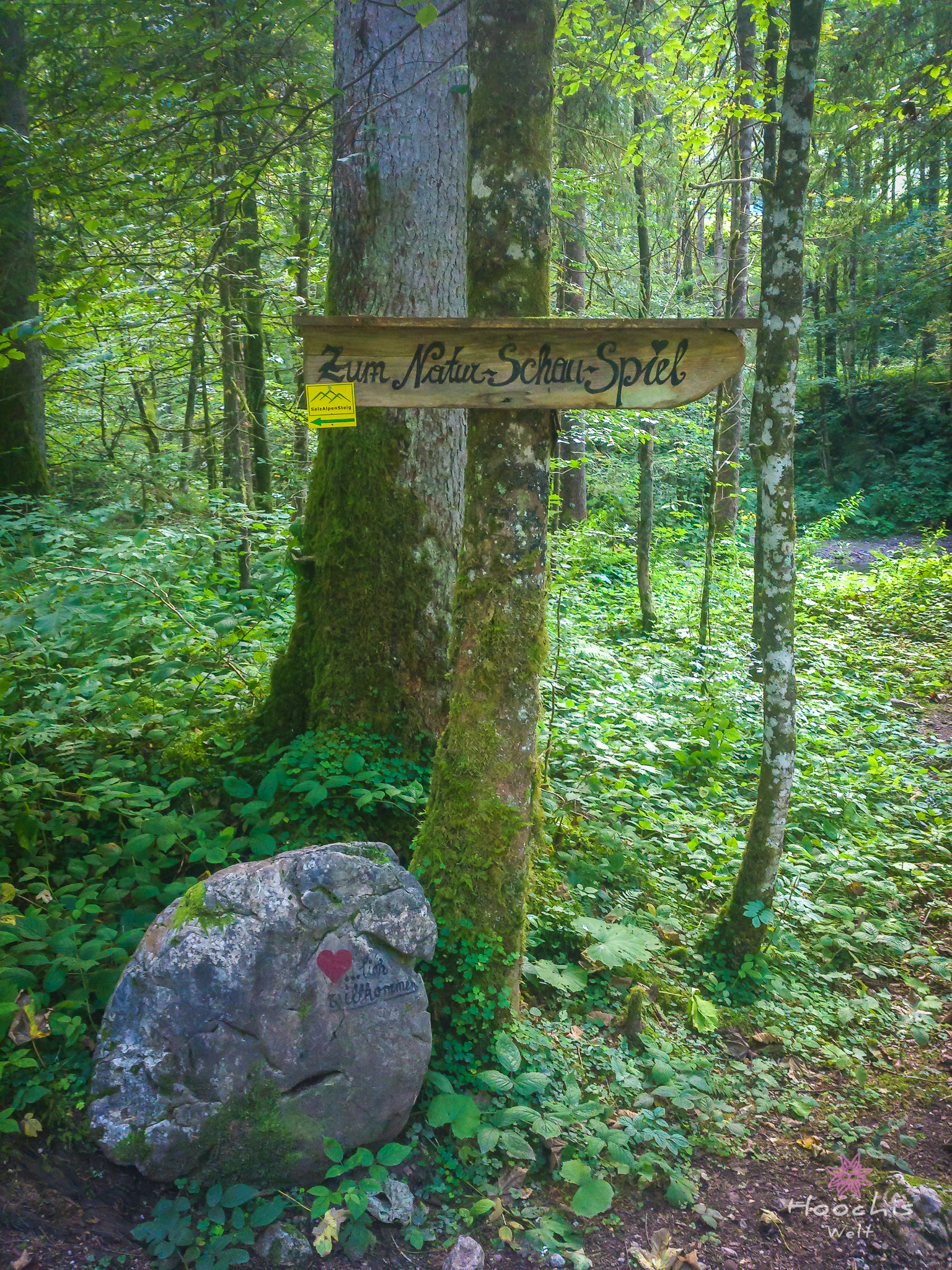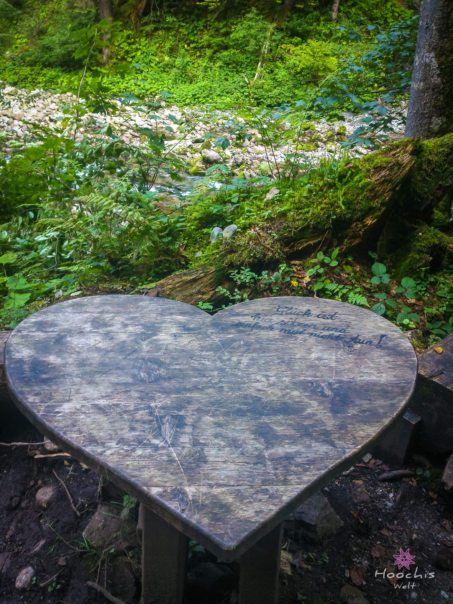 Nachdem wir uns einen Eiskaffee gegönnt hatten, liefen wir an den Startpunkt des Mühlenrundweges. Da fielen mir auf Steinen gemalte kleine Herzen auf. So kam es dazu, dass Flo den Mühlenrundweg lief und ich den Herzerlweg. 😉 Gut, dass es der selbe Weg war.
