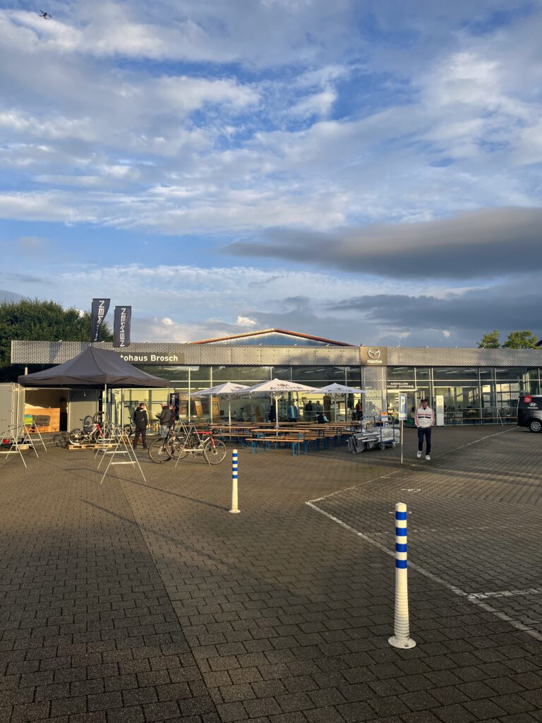Bei Regen fuhr ich zu Hause pünktlich los um direkt „mit der ersten Welle“ zu starten. Fertig machen. Startnummer holen. Alles entspannt, so früh sind nicht ganz so viele da.