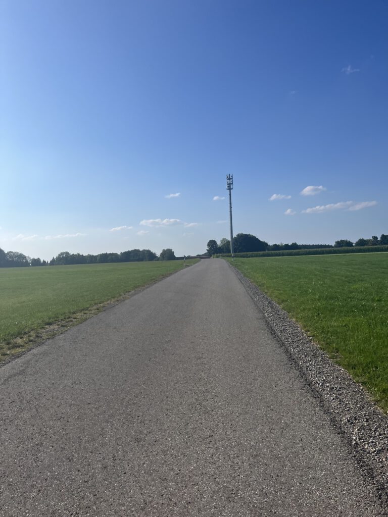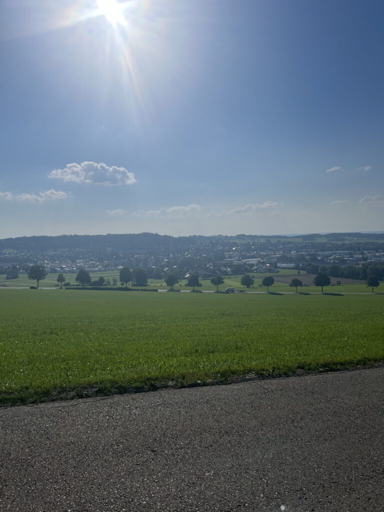 Ich hatte meinen Startpunkt vergessen und war tatsächlich noch weit vom Ende entfernt. Bedeutet: nochmal gute 50–60 km. Flaschen mittlerweile leer. Und vor mir ein Anstieg, den ich normalerweise liebe – normalerweise. Hopferbach hoch nach Eschers. An dem Tag? Zu dem Zeitpunkt? Fuck you! Klar, ich hätte auch einfach quasi geradeaus nach Hause fahren können, aber ich wollte diese Runde zu Ende bringen.