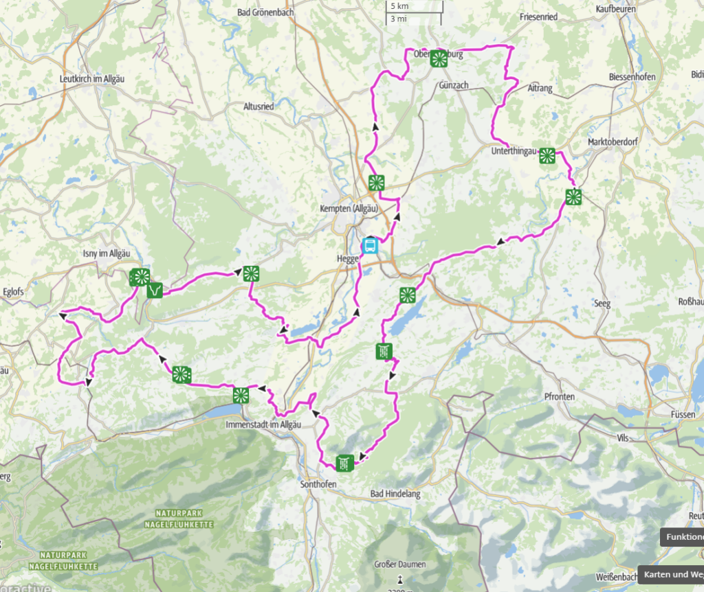 Vom Oberallgäu (Durach) ins Unterallgäu, weiter durchs Ostallgäu und dann zurück ins Oberallgäu. Steinigt mich, aber ich glaube, das Westallgäu bleibt außen vor. Kein Problem – wer ein württembergisches Allgäu hat, hat’s halt auch nicht verdient. *lach* Sorry, die Spitze konnte ich mir nicht verkneifen. *zwinker*