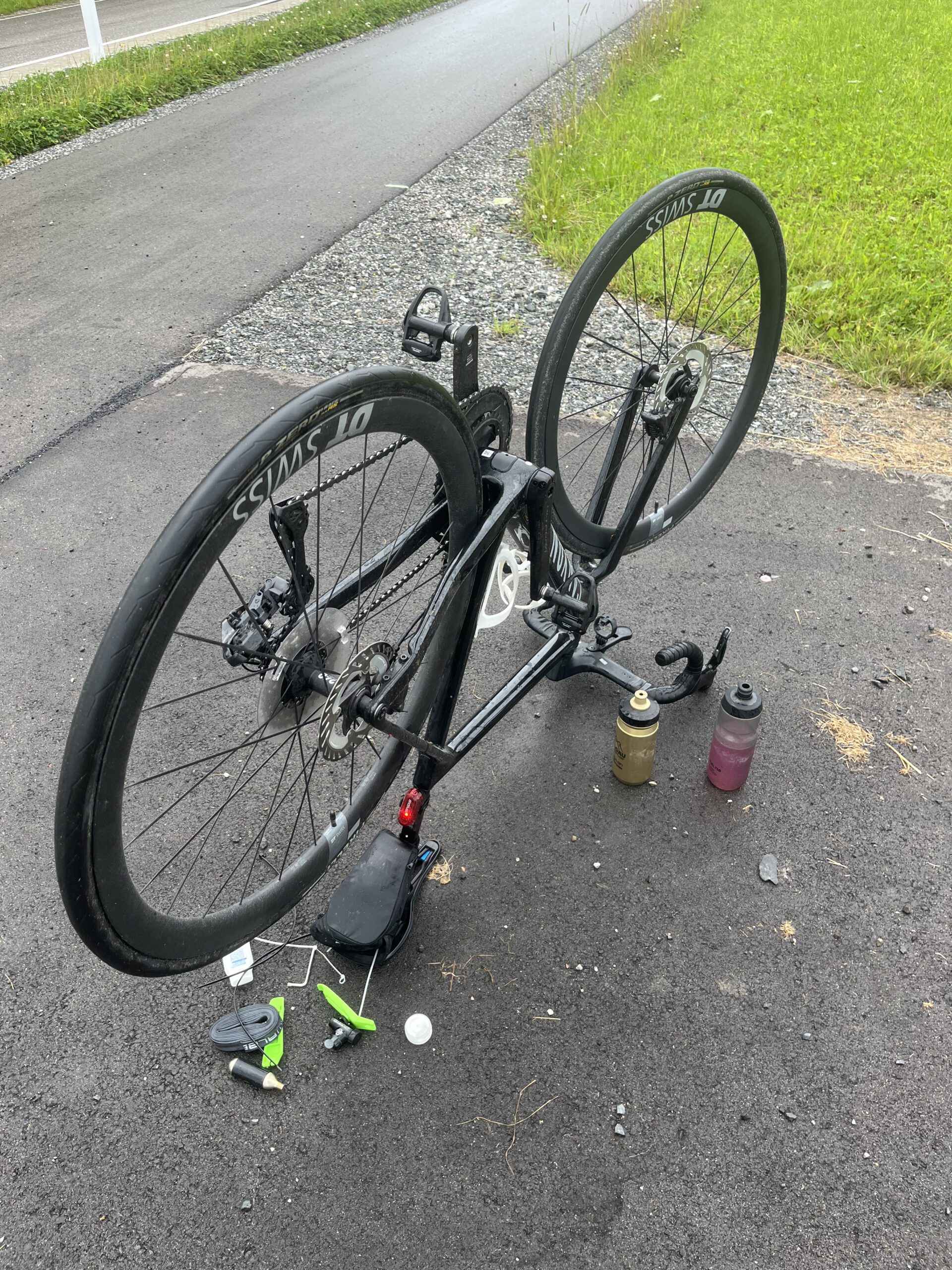 Ich konnte noch rechtzeitig anhalten – kein Sturz. Egal, ich hatte alles dabei! Rad umgedreht, Reifen runter, Ersatzschlauch rein. Währenddessen hielten mehrere Teilnehmer an und fragten, ob alles passt. „Alles gut, nur kurz Schlauch wechseln„. Und auch hier: extrem cool – wirklich jeder hat angehalten. Keinem war’s egal.