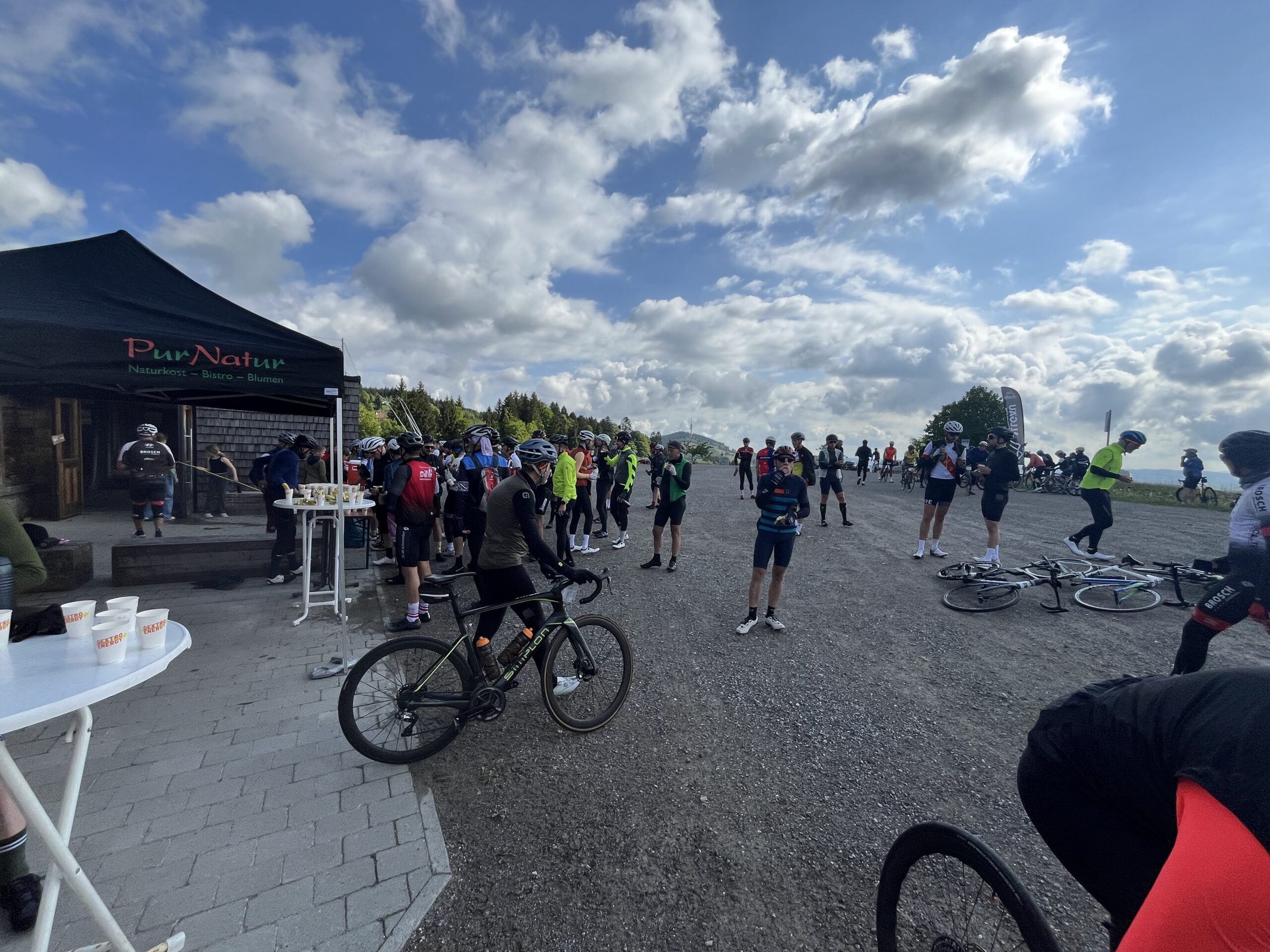 Matthias hatte aber auch schon signalisiert, dass er gerne 5 Minuten länger Pause machen würde an der Verpflegungsstation. Mir wars recht, so konnte ich meinem Knie noch etwas Pause verschaffen. Zeit hatte ich sowieso keine im Kopf. Ich wollte die Tour einfach genießen und schauen wie das alles so abläuft. Bis dato war ich – außer mit Frau und Kind – nur allein unterwegs und war noch nie mit Anderen gefahren.