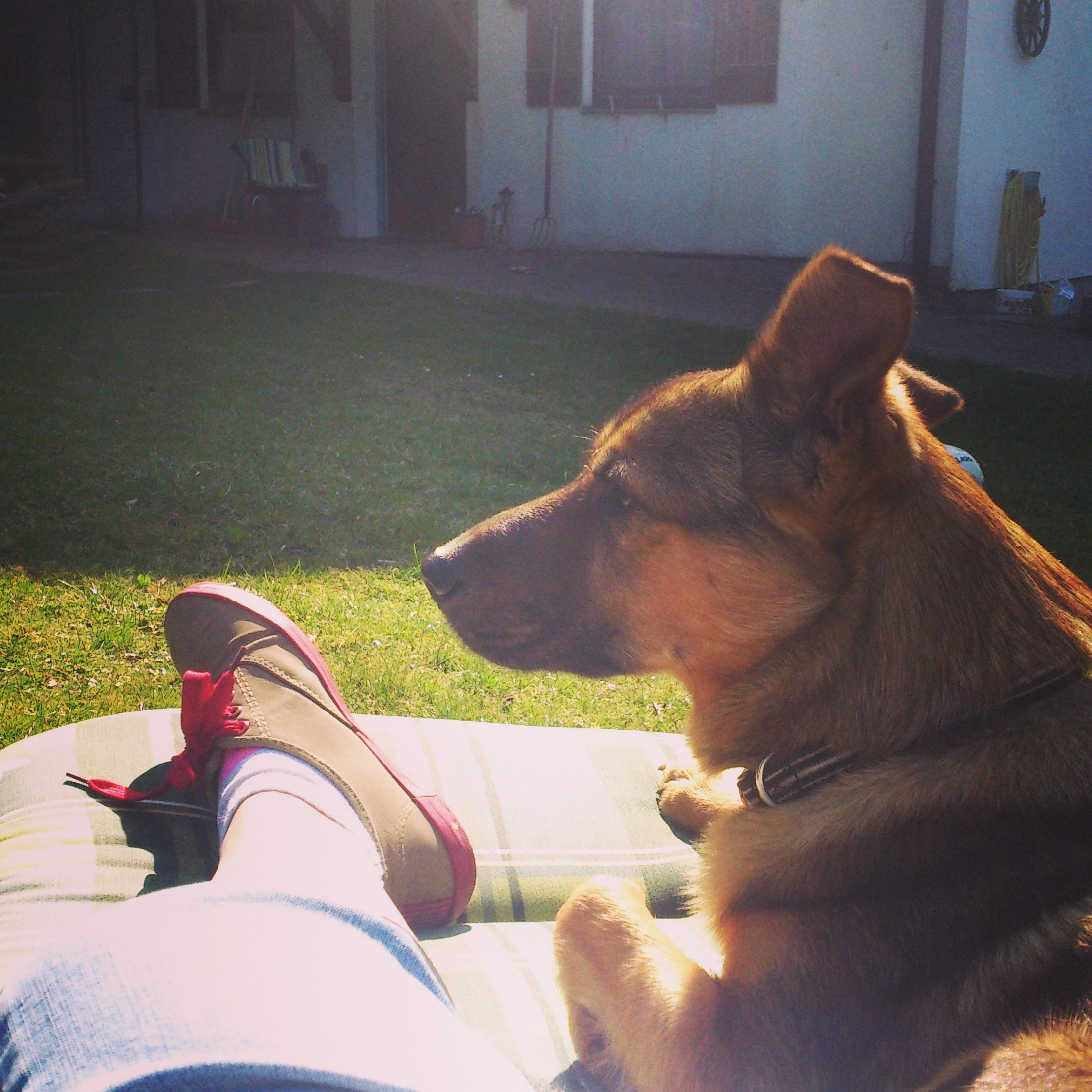 Alle waren arbeiten und ich war mit dem Hund des Hauses „Enzo“ allein zu Hause. Wir genossen die Sonne im Garten und liessen es uns gut gehen.