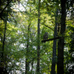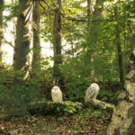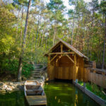 Nach einem kurzen Spaziergang durch den naheliegenden Wald, der bereits mit Schaukästen aus Holz und Balanciermöglichkeiten für Kinder bestückt ist, erreicht man den Eingang.