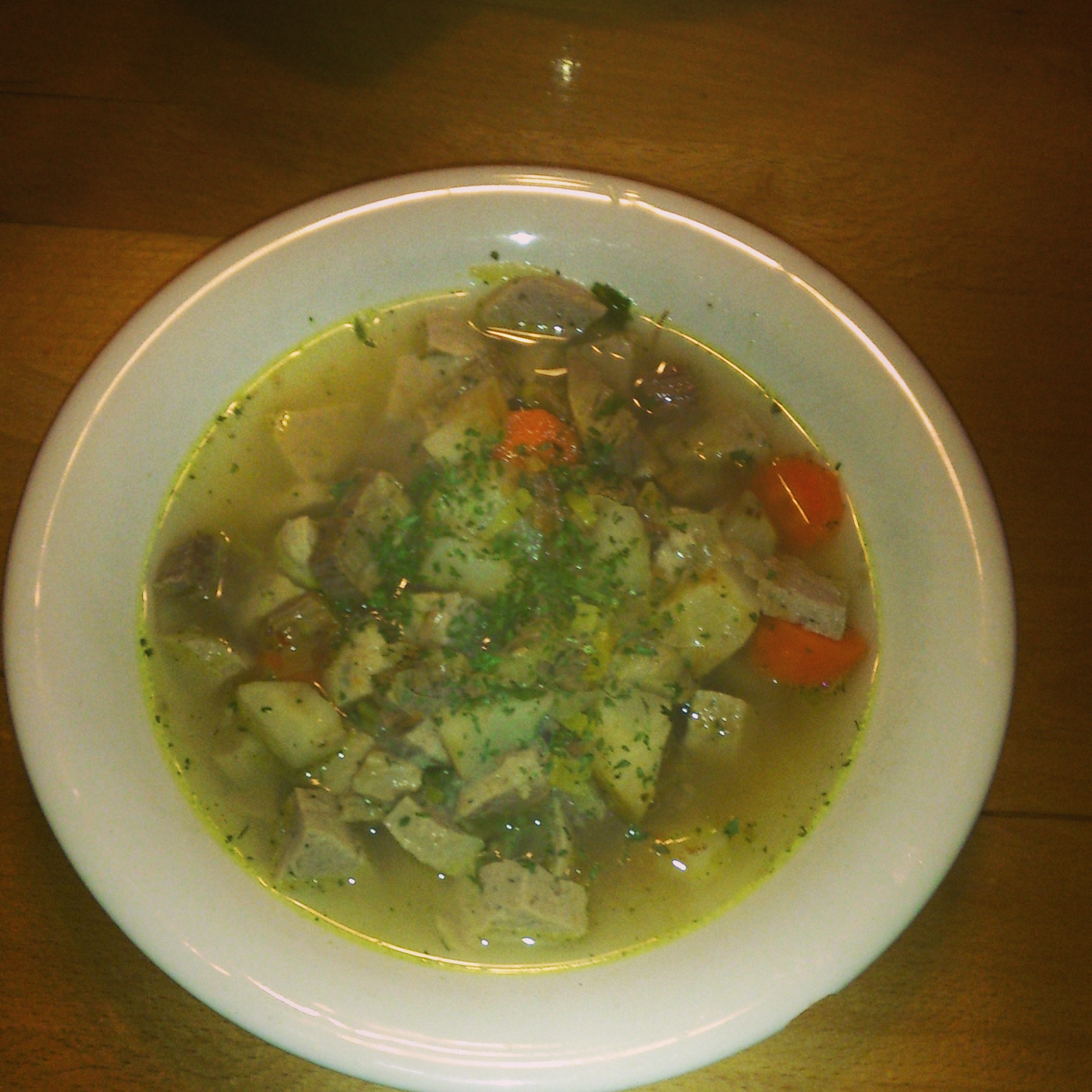 Anschließend zur Brühe geben und genießen.