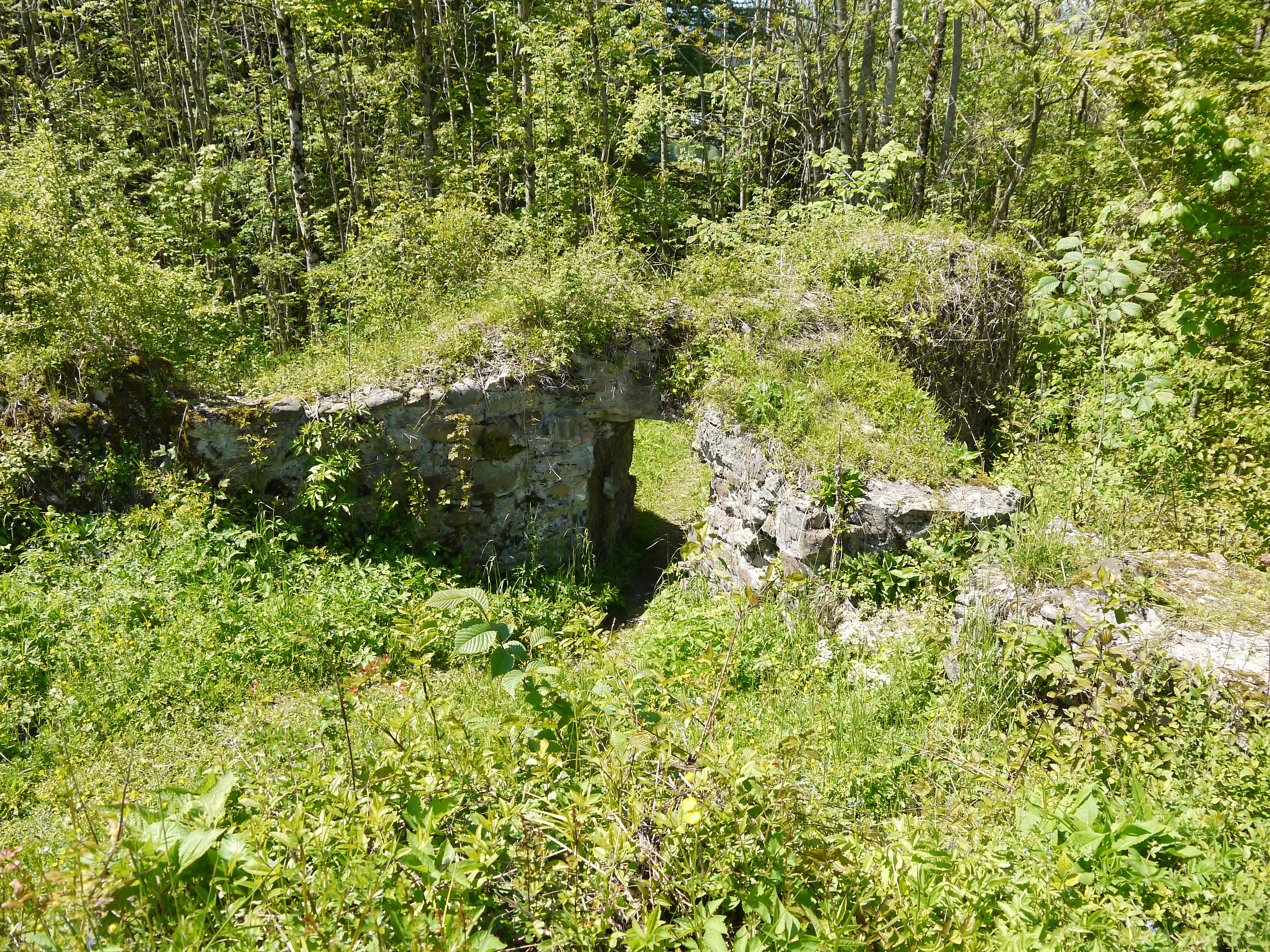 Von der ehemaligen Burganlage sind noch Mauerreste erhalten.