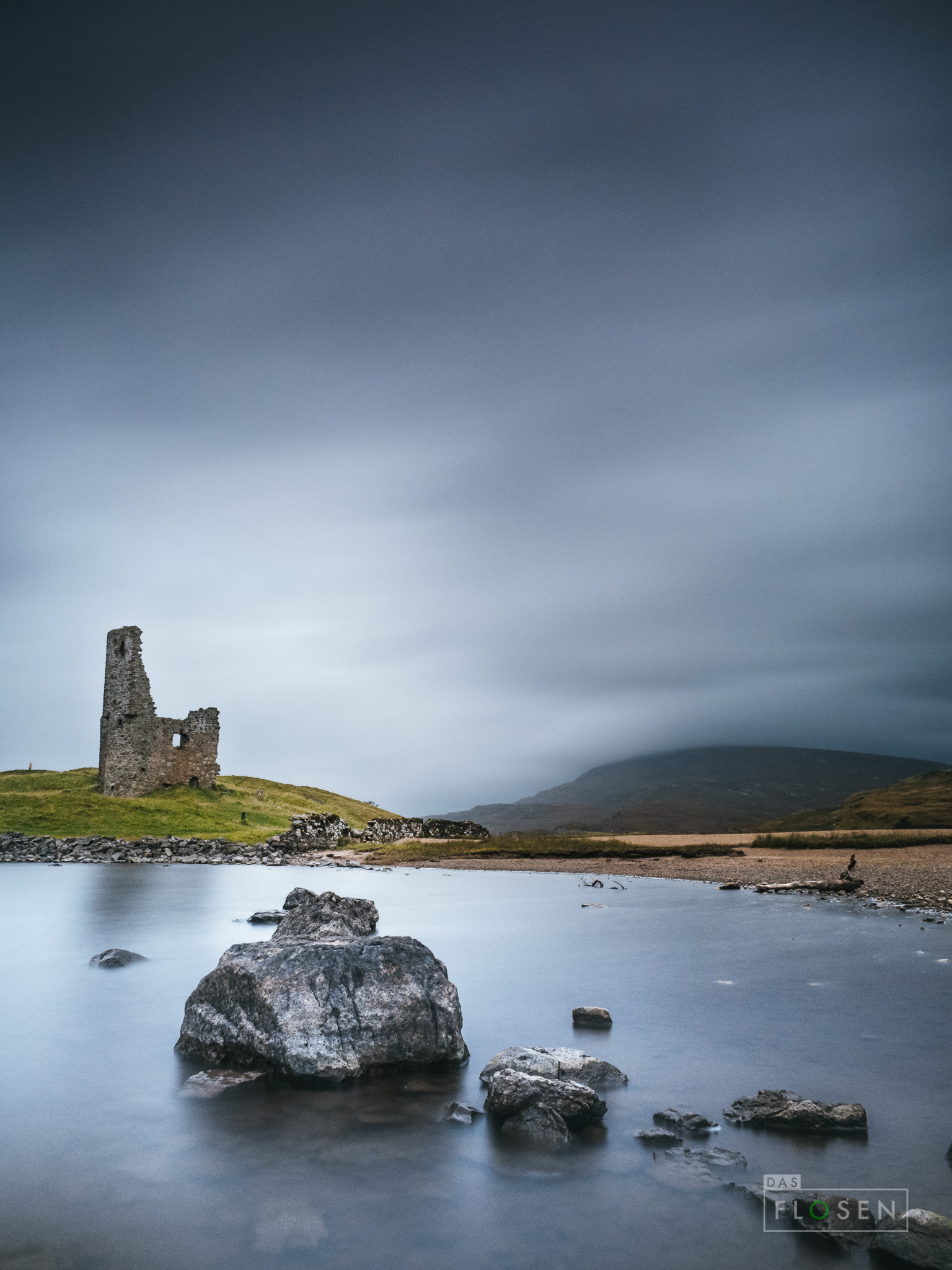 Wir stiegen also wieder in den Bus und fuhren zurück zum Castle Ardvreck. Der letzte Punkt, an dem ich mein Stativ benutzte. [Anm.d.Red.: Ja, ich habe das auf meiner Kamera überprüft!!!] Da wir dieses Mal die Halbinsel nich ausfuhren, waren wir in nur 1,5 Std. wieder am Castle angekommen. Das Stativ? Weit und breit keine Spur davon! Wir liefen wirklich jeden verdammten Zentimeter ab. Es war nicht mehr da. Wir fuhren sogar noch in Richtung der Halbinsel. Nichts. Kein Stativ. Da wir in der Zeit vom Castle Altverreck bis Durness keinen wirklichen Halt gemacht hatten, konnte es dort nirgendwo liegen.