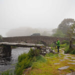 In Postbridge angekommen parkten wir am Visitor Center, auf einem großzügigen und kostenlosen Parkplatz. Den Rest des Weges zur Clapper Bridge gingen wir zu Fuß. Das Wetter war wechselhaft. Mal nieselte es und mal war es trocken. Aber an diesem Tag war ich schon froh, meinen neu gekauften Friese eingepackt zu haben. (Dieser wurde zu Hause natürlich schon probe getragen.) Dort, an der Brücke tobten wir uns zuerst aus und nutzten jede Gelegenheit, an der keine anderen Touris da waren und fotografierten. Die Touristen werden hier nämlich mit dem Bus angekarrt und es hält einer im 10 Minuten Takt.
