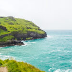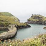 Unser nächstes Ziel war die Küste im Westen. Genauer gesagt Tintagel und das Tintagel Castle. Geparkt haben wir in Tintagel und erkundeten zuerst das Dorf und dessen Scharen an Touristen. Hier gönnten wir uns einen Snack. Danach gingen wir zum Tintagel Castle hinunter. Auch hier sparten wir uns den Eintritt, aber nicht, weil es uns zu teuer war (wir hatten nicht mal geschaut was es kostet), sondern, weil es dort wie in einem Ameisenhaufen vor Besuchern wuselte. Das ersparten wir uns und liefen gegenüber lieber auf den Berg und genossen die Aussicht.