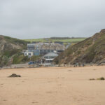 Anschließend fuhren wir zu Watergate Bay. Das ist einer DER Surferstrände in Cornwall und Jamie Oliver hat dort sein Restaurant „fifteen“. Ich hoffe, das sagt euch was. Da es windete waren wir guter Dinge auch ein paar Surfer zu sehen. Und tatsächlich sahen wir auch ein welche. Wir schlenderten den Strand entlang bis es begann richtig zu regnen.
