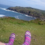 Dort wurden die Wanderschuhe, die Jacke, das Stirnband und der Schal angezogen, der Rucksack auf die Schultern geschnallt, und ab ging die Post. Wir wanderten auf dem South West Coast Path an der Küste entlang zum Cape Cornwall. Es dauerte nicht lange und ich zog meinen Schal aus und musste meine Jacke öffnen. Irgendwann musste ich sogar die Jacke ausziehen und das Stirnband entfernen. Nach ____ Stunden Gehzeit kam ich am Cape Cornwall an und musste auch da noch meine lange Hose zur kurzen Hose umbauen. Dort entstand auch das Foto mit den Wollsocken von Oma. Dieses Foto schickte ich als Gruß an sie. 🙂
