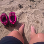 Zur Belohnung gab es dann Sonne, Strand und Meer. Natürlich musste ich meine Schuhe ausziehen und ins Wasser rennen. Da musste ich feststellen, dass das Wasser arsch kalt war. 😀 Und überall lagen Quallen herum. Flo tobte sich bei den Surfern aus, die natürlich auch hier zu sehen waren und ich saß auf einem Stein und vergrub meine Füße im warmen Sand.