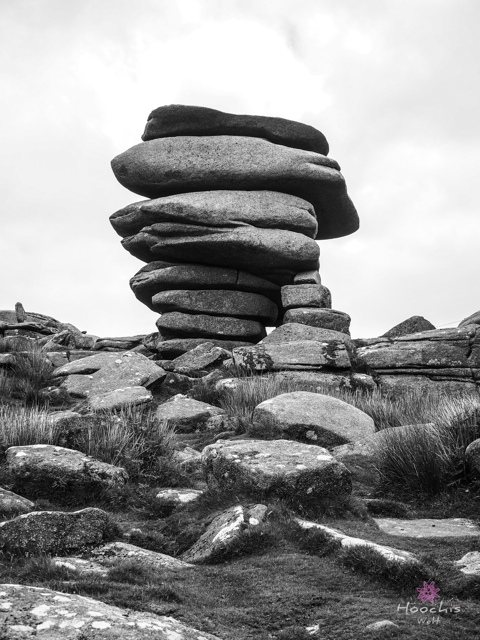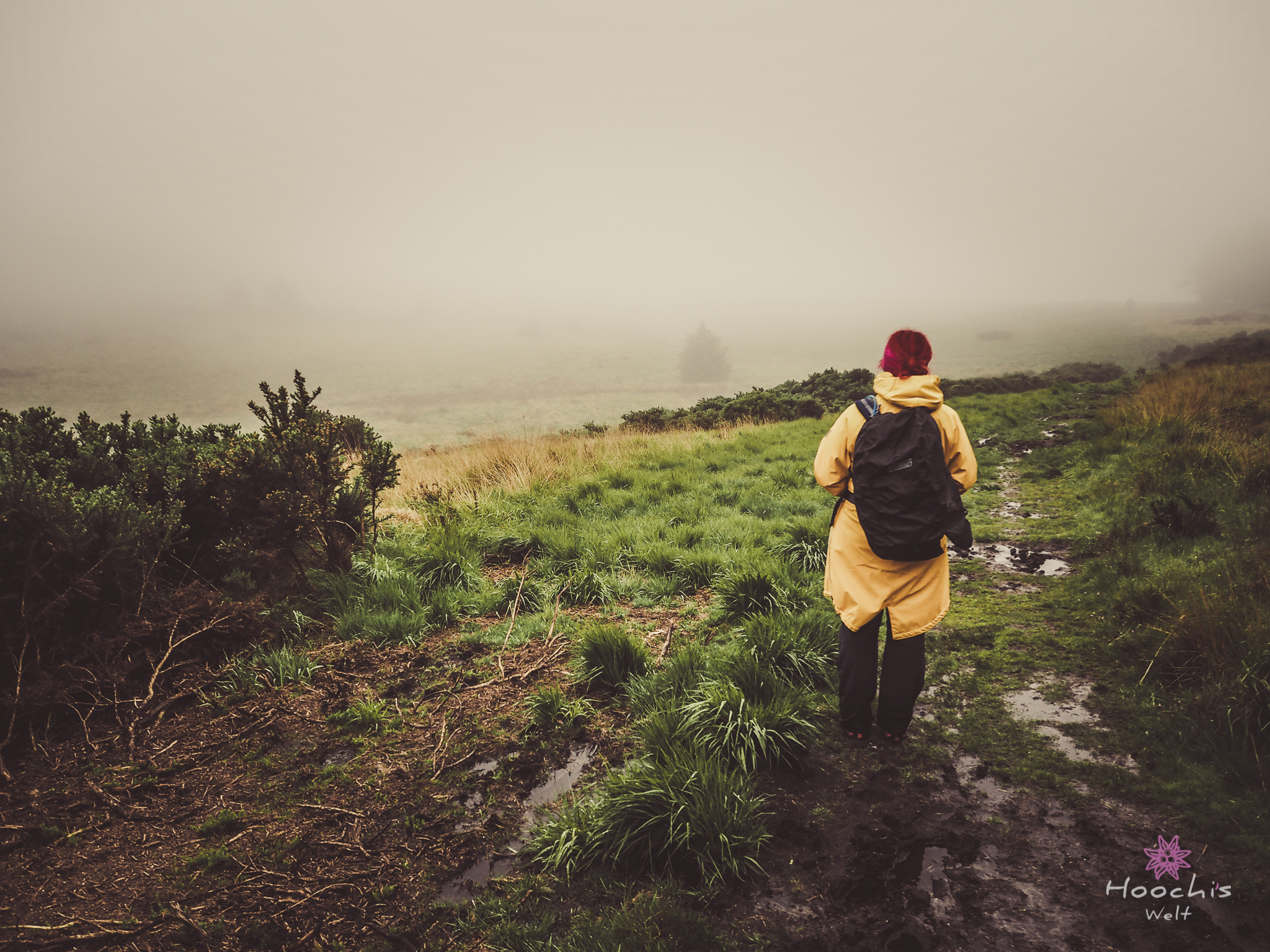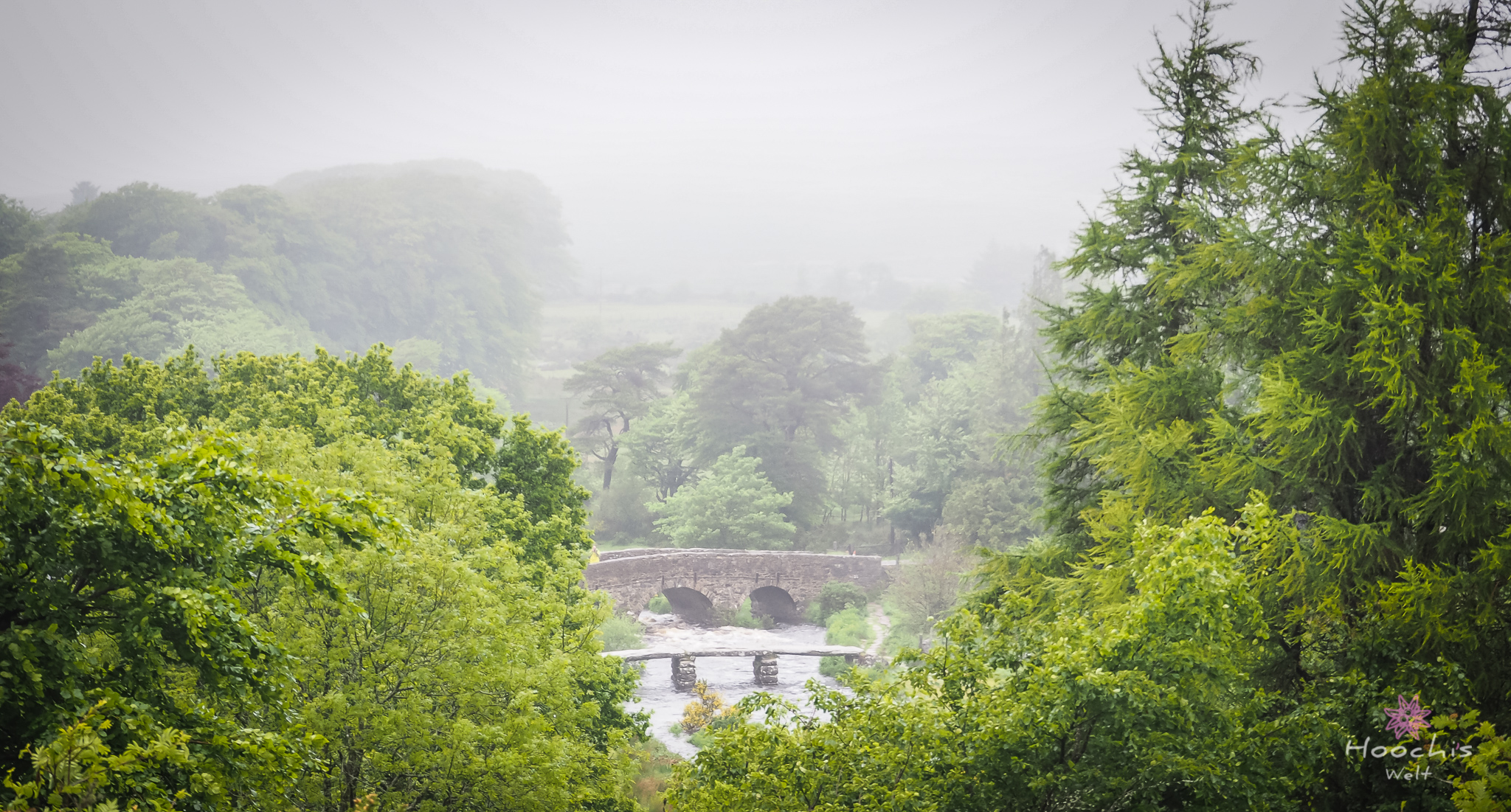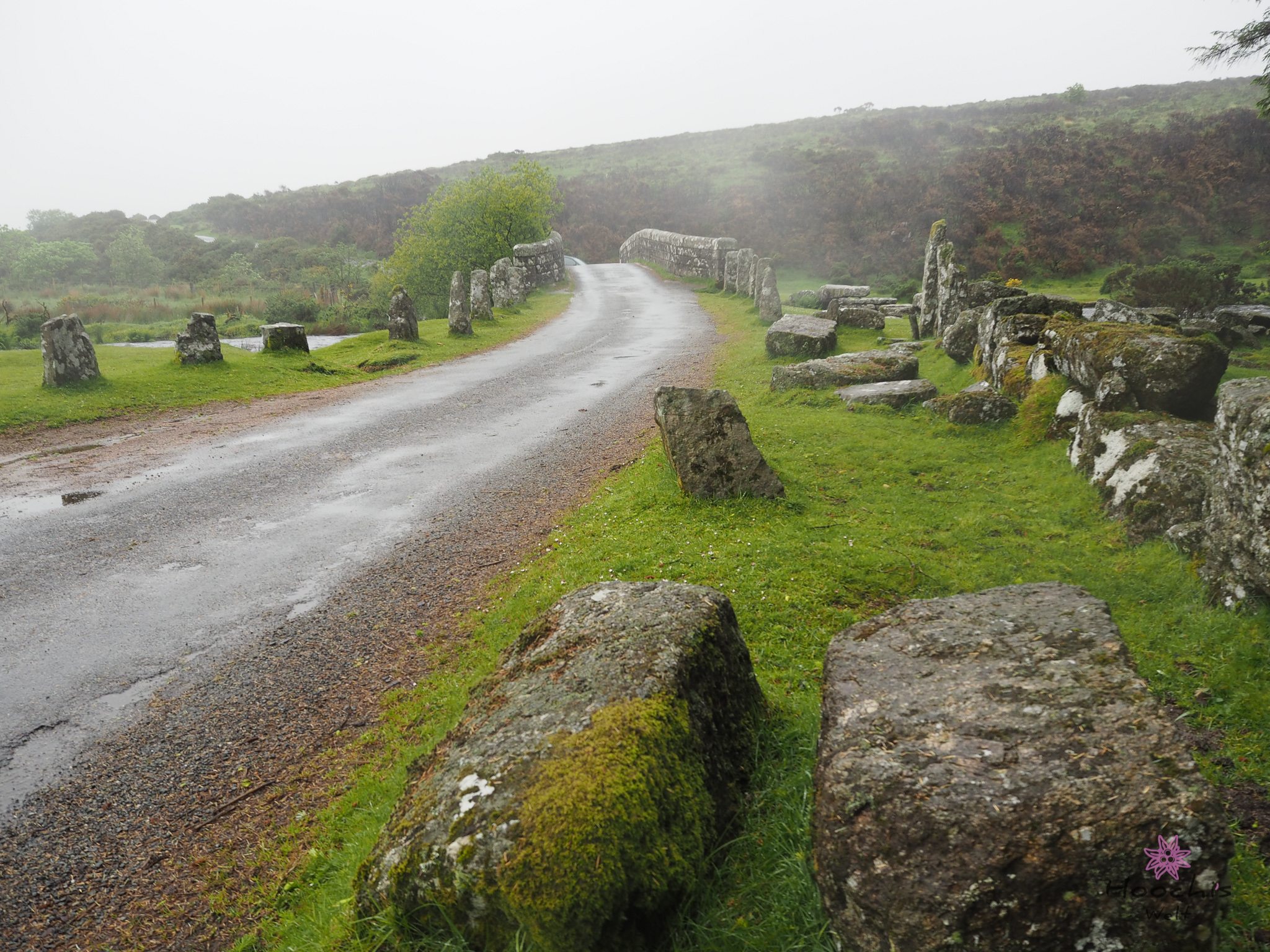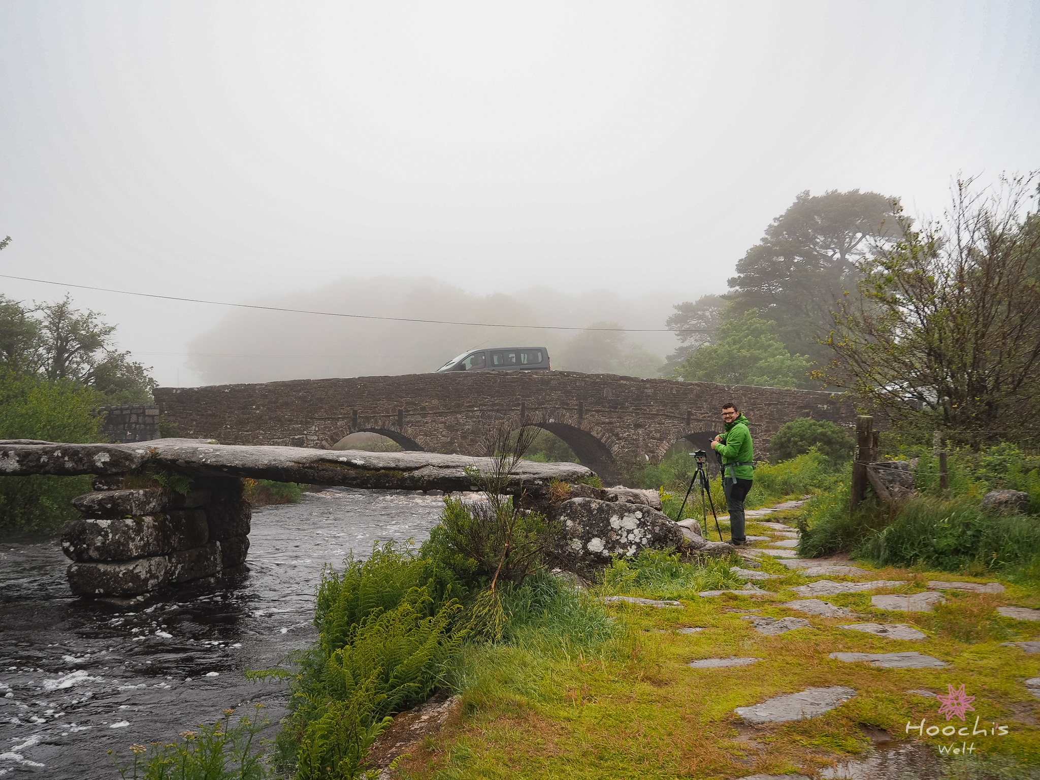 In Postbridge angekommen parkten wir am Visitor Center, auf einem großzügigen und kostenlosen Parkplatz. Den Rest des Weges zur Clapper Bridge gingen wir zu Fuß. Das Wetter war wechselhaft. Mal nieselte es und mal war es trocken. Aber an diesem Tag war ich schon froh, meinen neu gekauften Friese eingepackt zu haben. (Dieser wurde zu Hause natürlich schon probe getragen.) Dort, an der Brücke tobten wir uns zuerst aus und nutzten jede Gelegenheit, an der keine anderen Touris da waren und fotografierten. Die Touristen werden hier nämlich mit dem Bus angekarrt und es hält einer im 10 Minuten Takt.