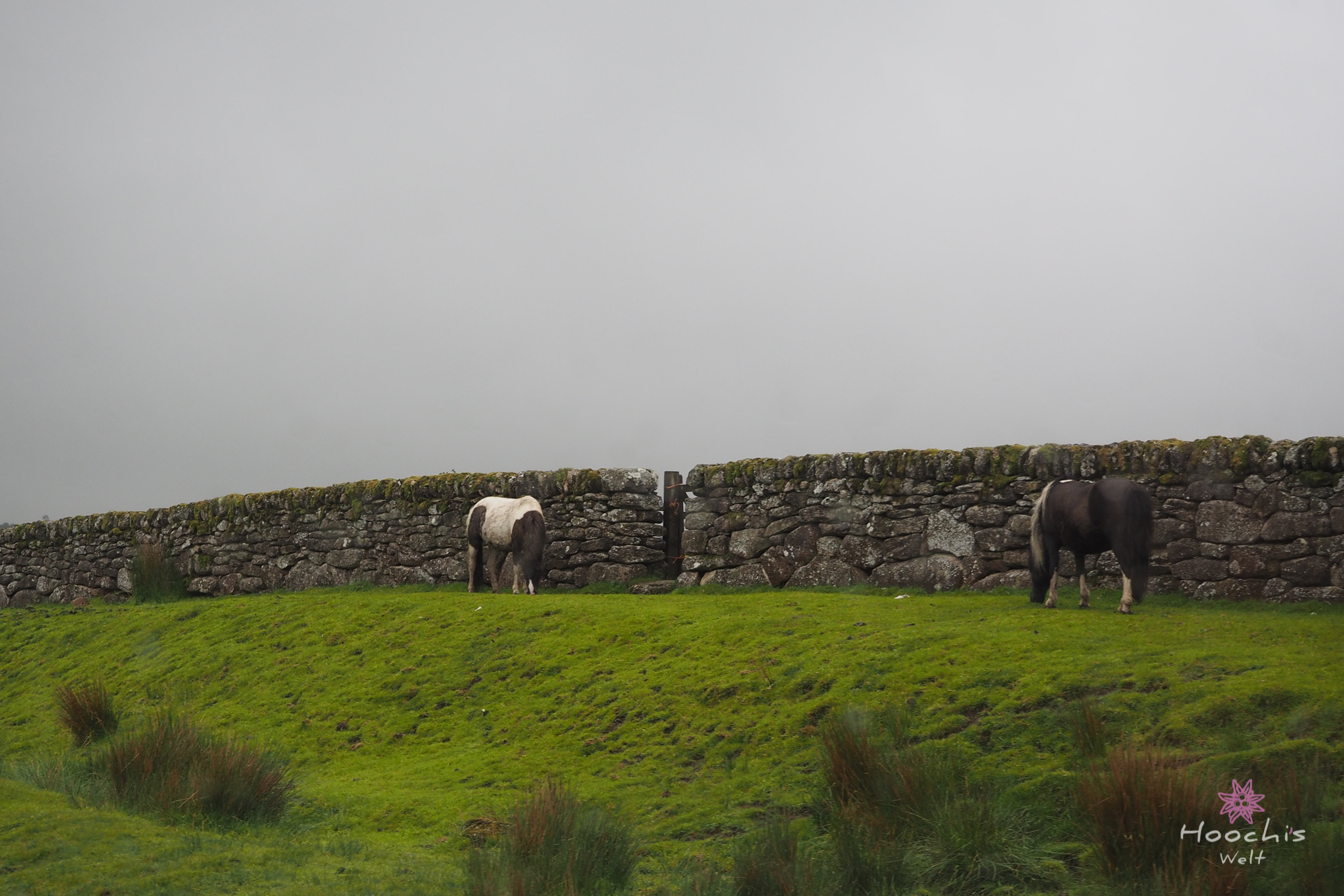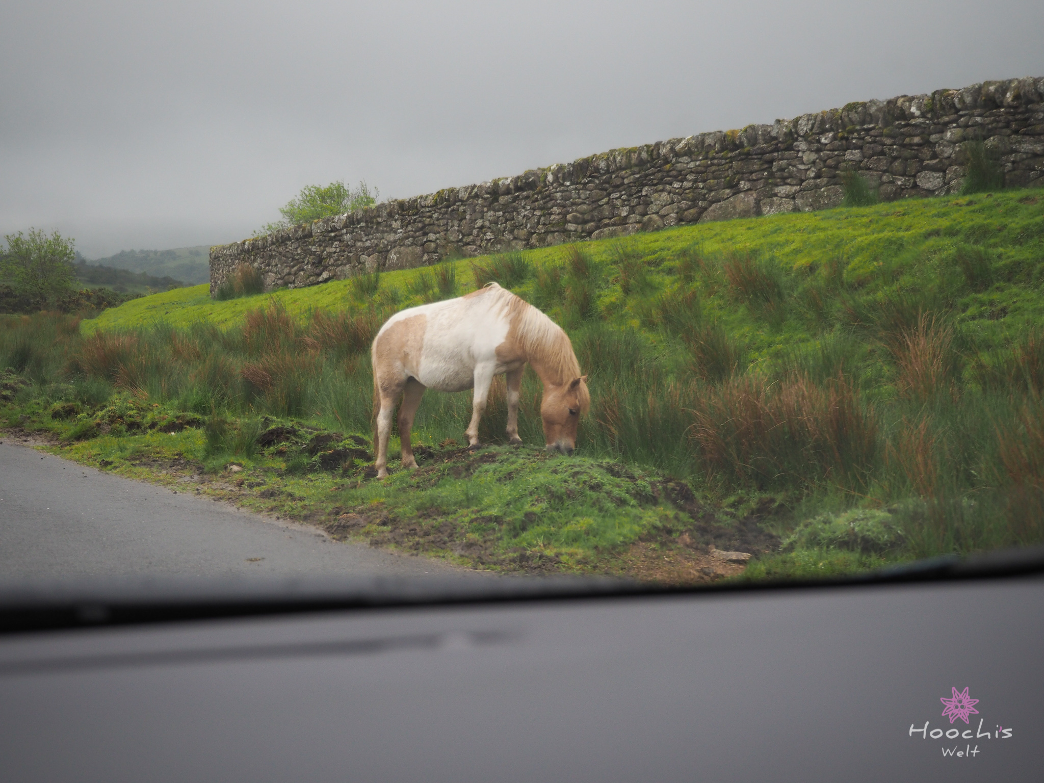 Gestärkt setzten wir uns ins Auto und fuhren in den Dartmoor National Park. Wir fuhren über Ashburton, Dartmeet, Two Bridges nach Postbridge. Zwischendurch hielten wir, wo es möglich war an und betrachteten die Landschaft. Und ich sah auch die ersten freilebenden Pferde. Ich war begeistert. Ein Traum wurde bereits am zweiten Tag erfüllt.