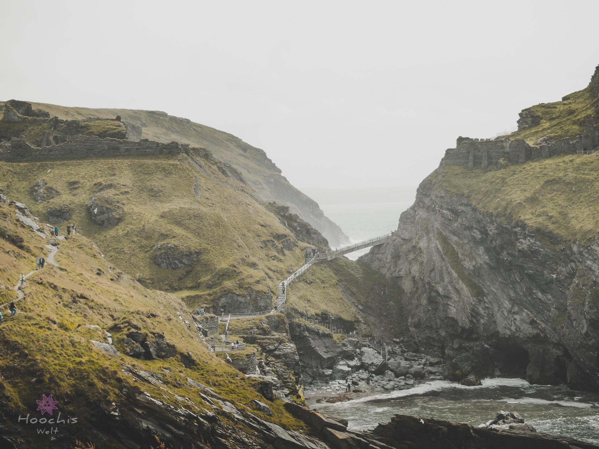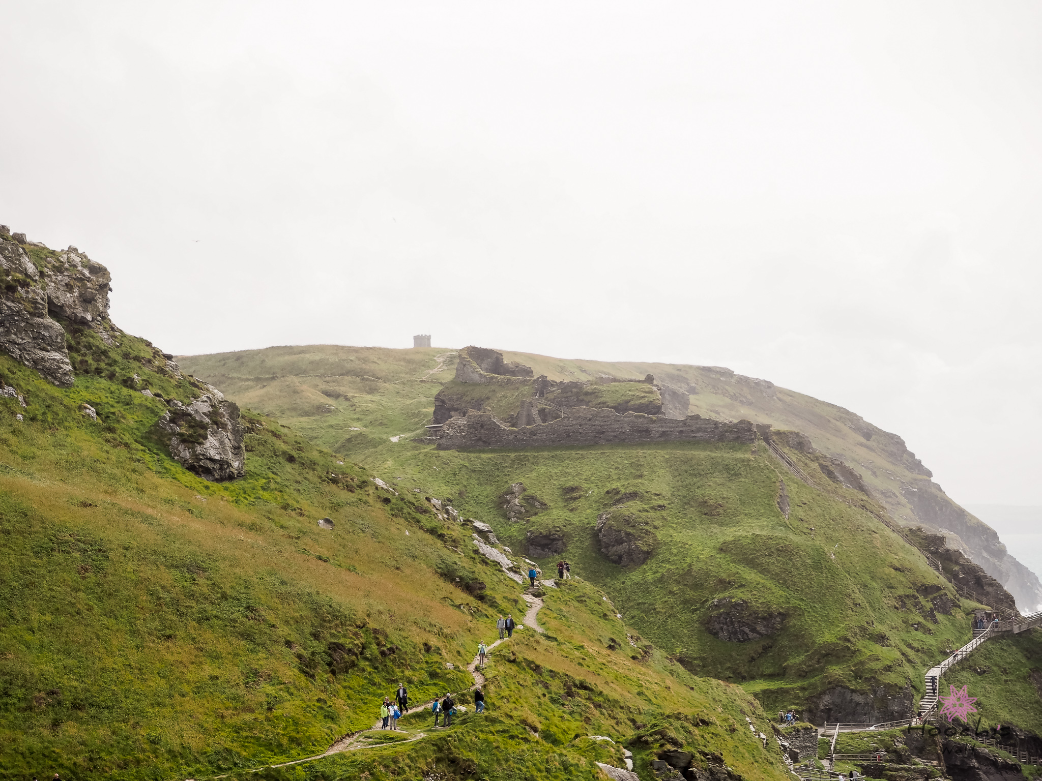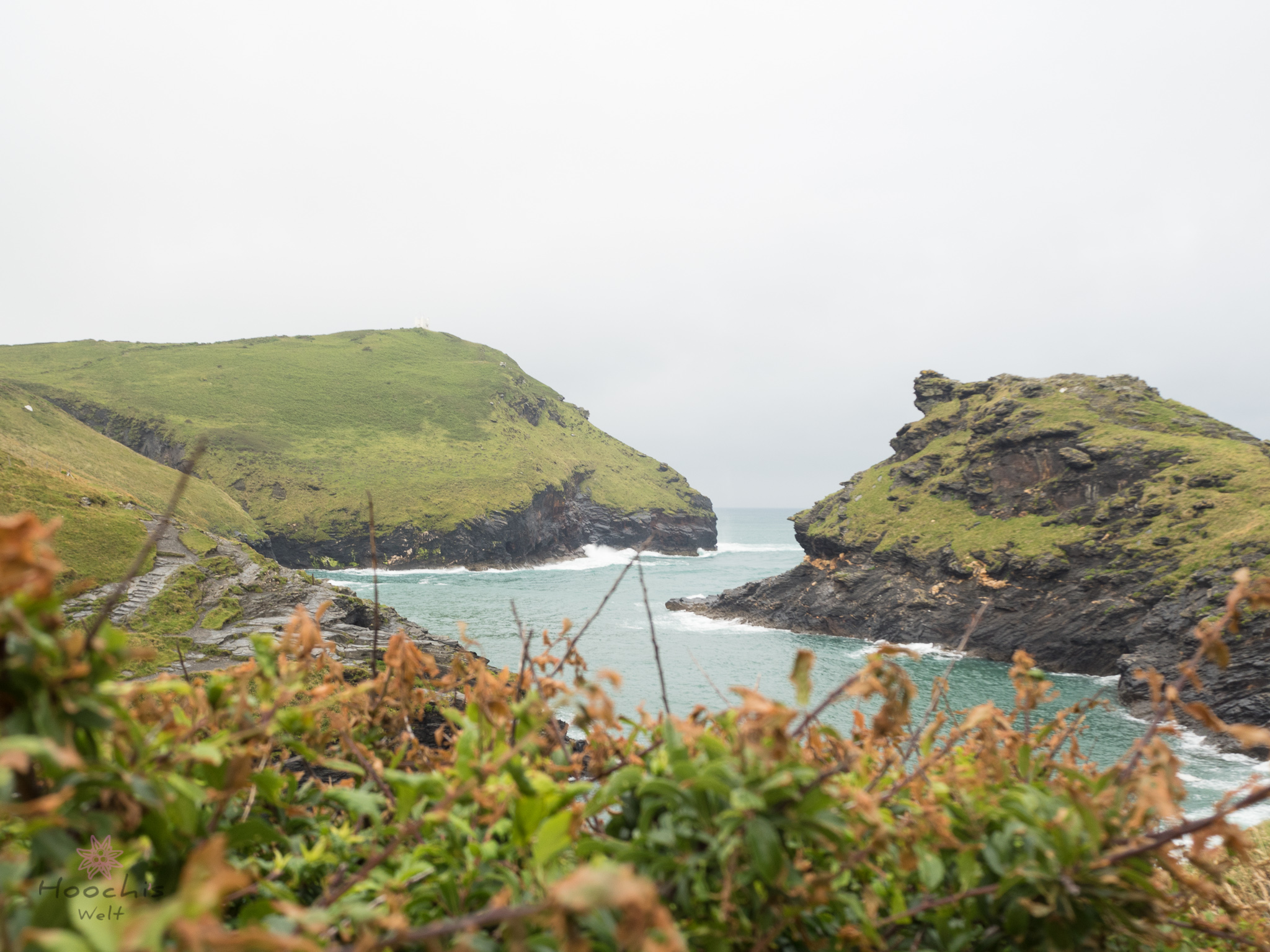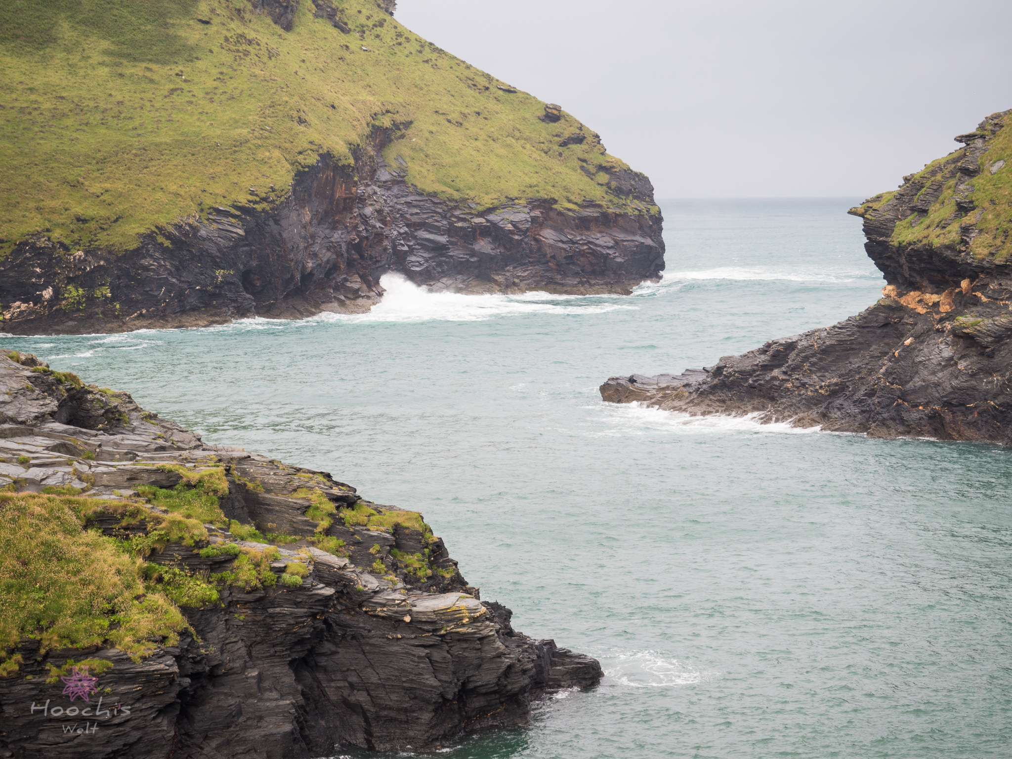 Unser nächstes Ziel war die Küste im Westen. Genauer gesagt Tintagel und das Tintagel Castle. Geparkt haben wir in Tintagel und erkundeten zuerst das Dorf und dessen Scharen an Touristen. Hier gönnten wir uns einen Snack. Danach gingen wir zum Tintagel Castle hinunter. Auch hier sparten wir uns den Eintritt, aber nicht, weil es uns zu teuer war (wir hatten nicht mal geschaut was es kostet), sondern, weil es dort wie in einem Ameisenhaufen vor Besuchern wuselte. Das ersparten wir uns und liefen gegenüber lieber auf den Berg und genossen die Aussicht.