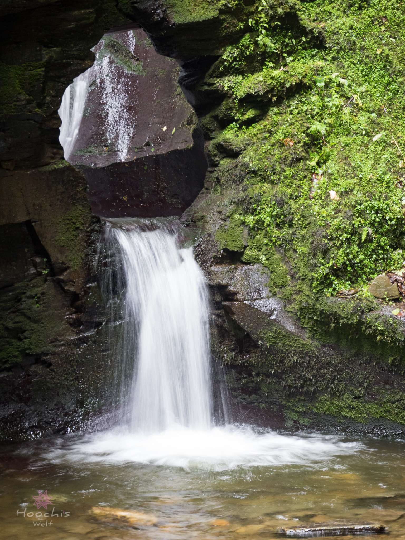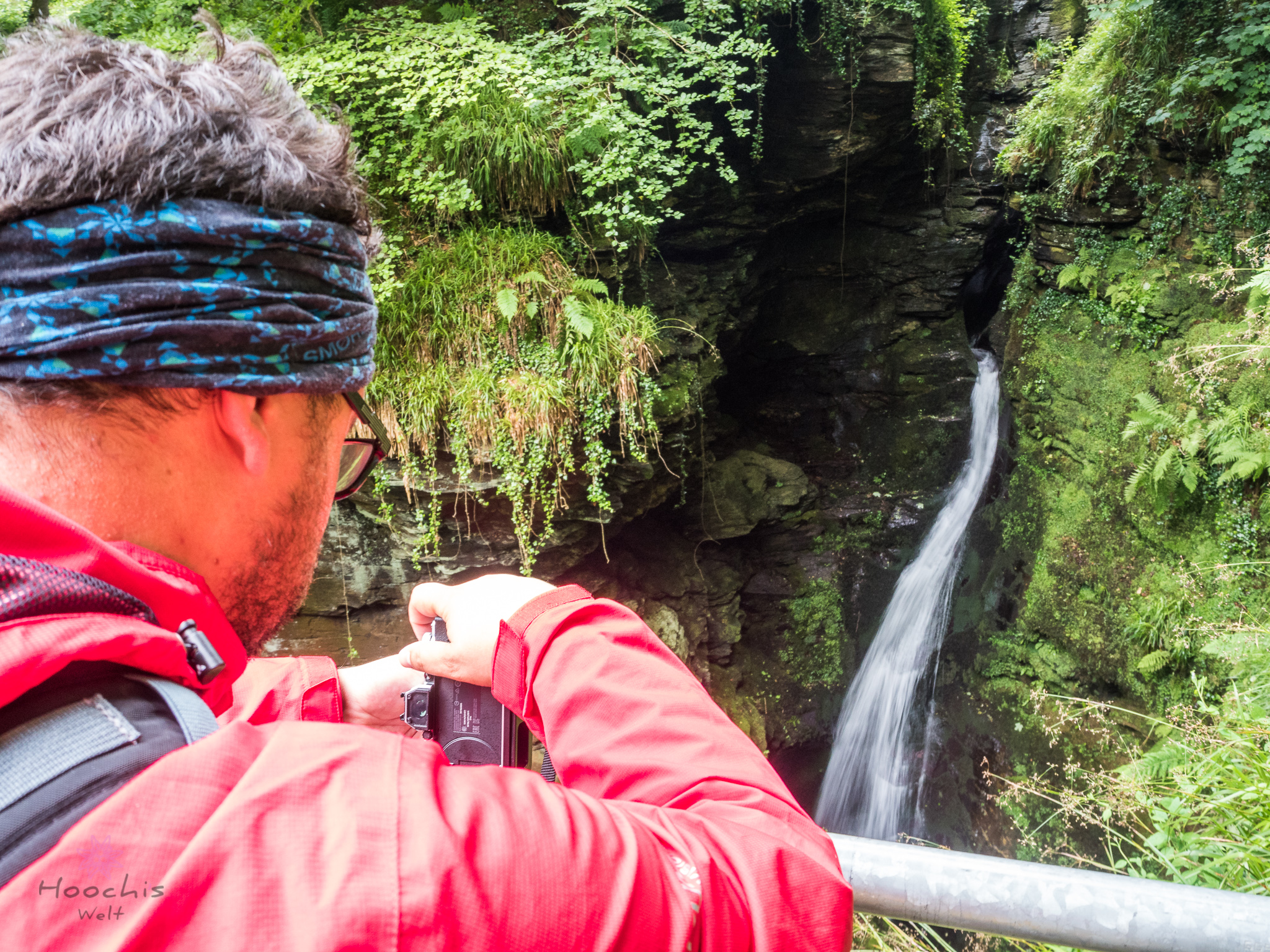 Am Wasserfall angekommen leisteten wir uns die £5.95 p.P und konnten beide Wasserfälle betrachten. Die Gummistiefel, die uns mehrmals angeboten wurden lehnten wir ab. Wir hatten ja wasserdichtes Schuhwerk. Die Aufmerksamkeit von Flo war auf den Wasserfall gerichtet und ich kümmerte mich mehr um das drum herum. Mir reichen 2-3 Fotos vom Wasserfall.
