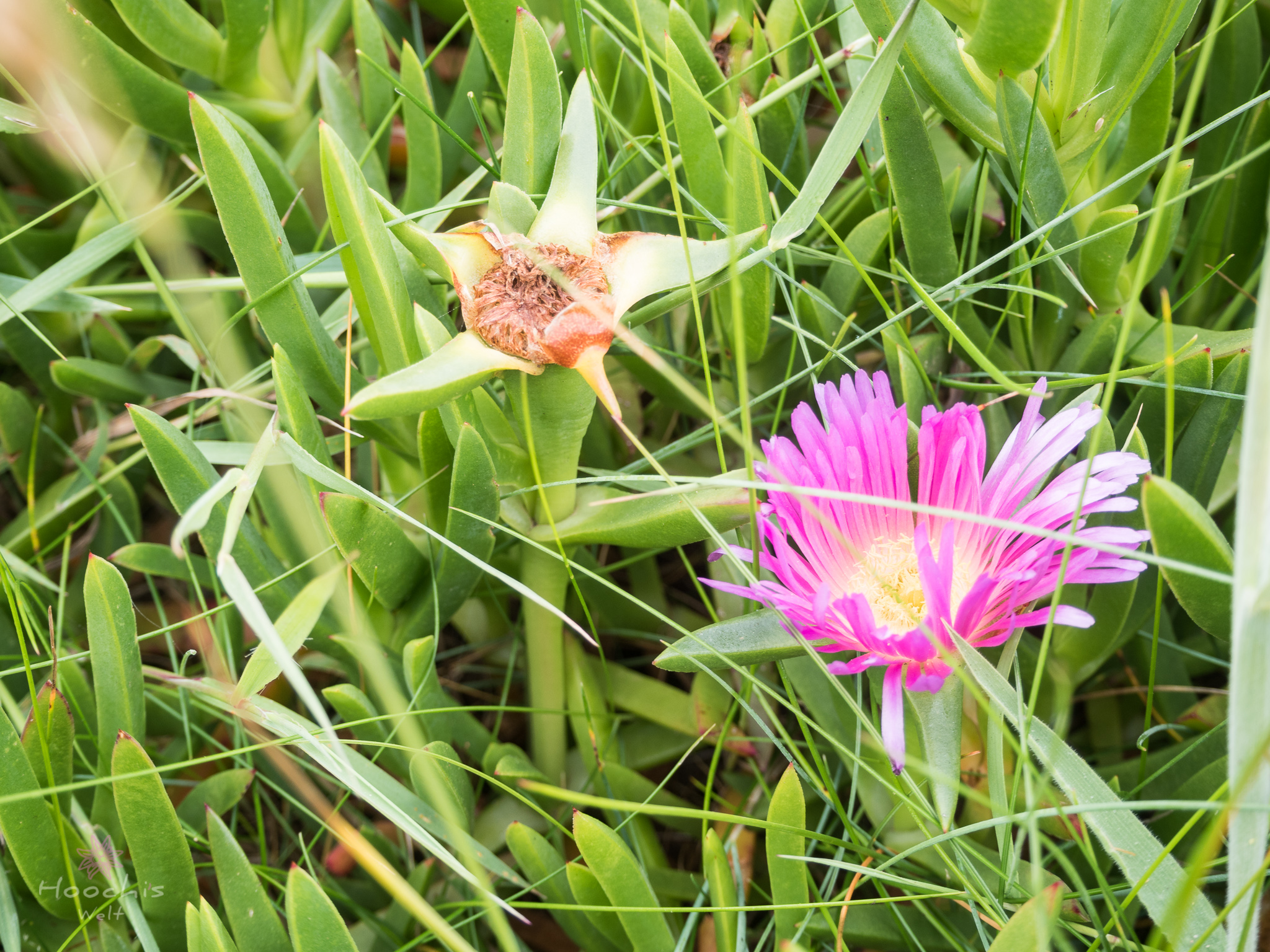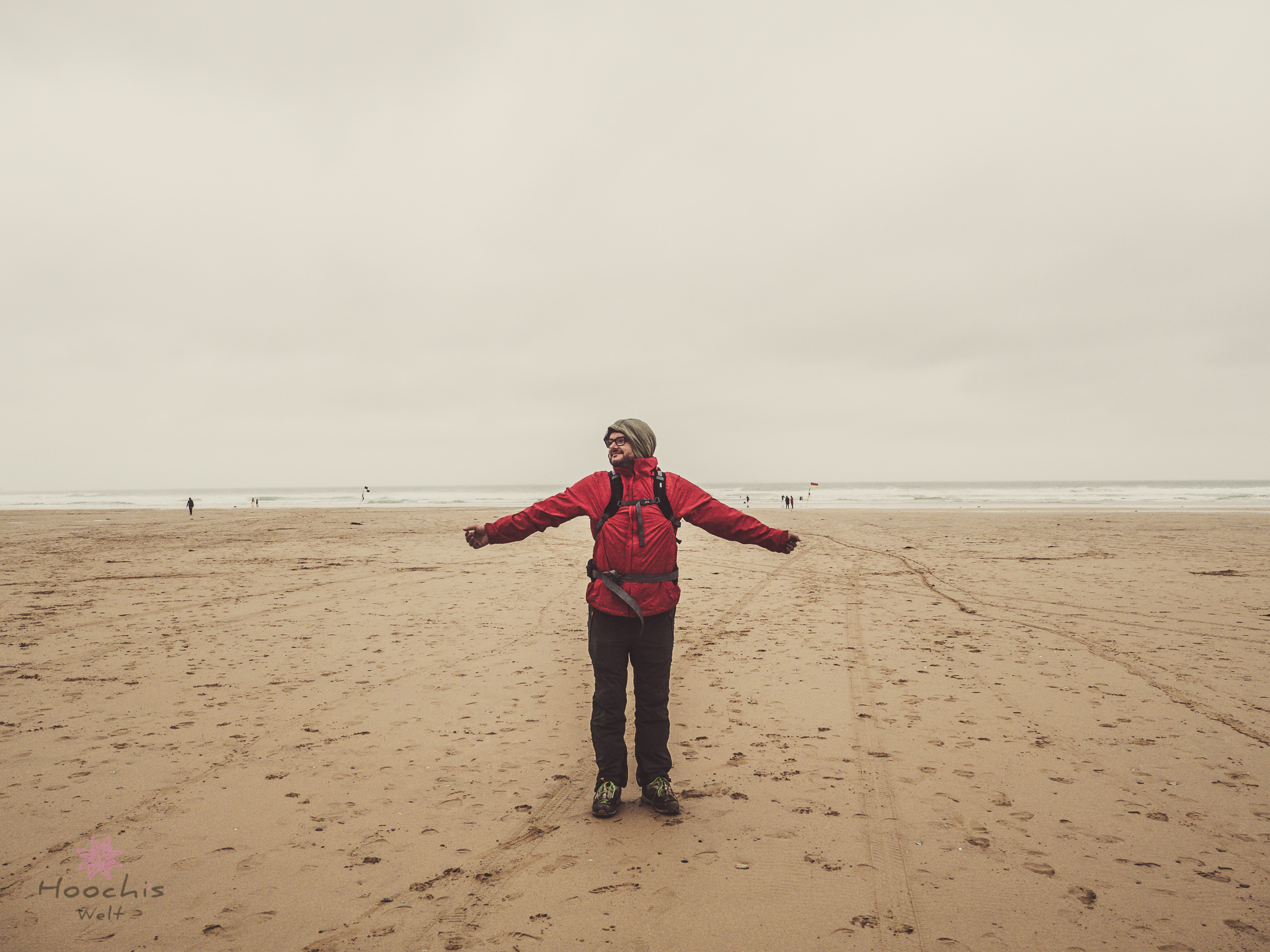 Zur Belohnung gab es dann Sonne, Strand und Meer. Natürlich musste ich meine Schuhe ausziehen und ins Wasser rennen. Da musste ich feststellen, dass das Wasser arsch kalt war. 😀 Und überall lagen Quallen herum. Flo tobte sich bei den Surfern aus, die natürlich auch hier zu sehen waren und ich saß auf einem Stein und vergrub meine Füße im warmen Sand.
