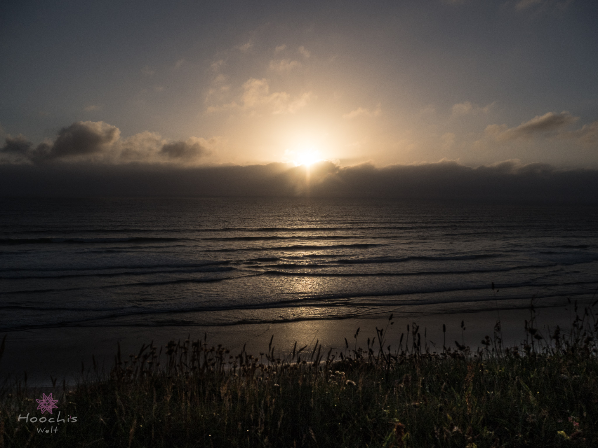 Nach dem Essen fuhren wir wieder zur Watergate Bay. Da es auch nicht mehr regnete, hatten wir gute Chancen auf den Sonnenuntergang. Tja, und da ich, die liebe Hoochi, ja immer was vergessen musste, habe ich dort bemerkt, dass ich die Stativplatte daheim vergessen hatte. Somit konnte ich den Sonnenuntergang nicht einfangen. Aber Flo hat ihn. Ihr müsst euch nur etwas Gedulden. 😉