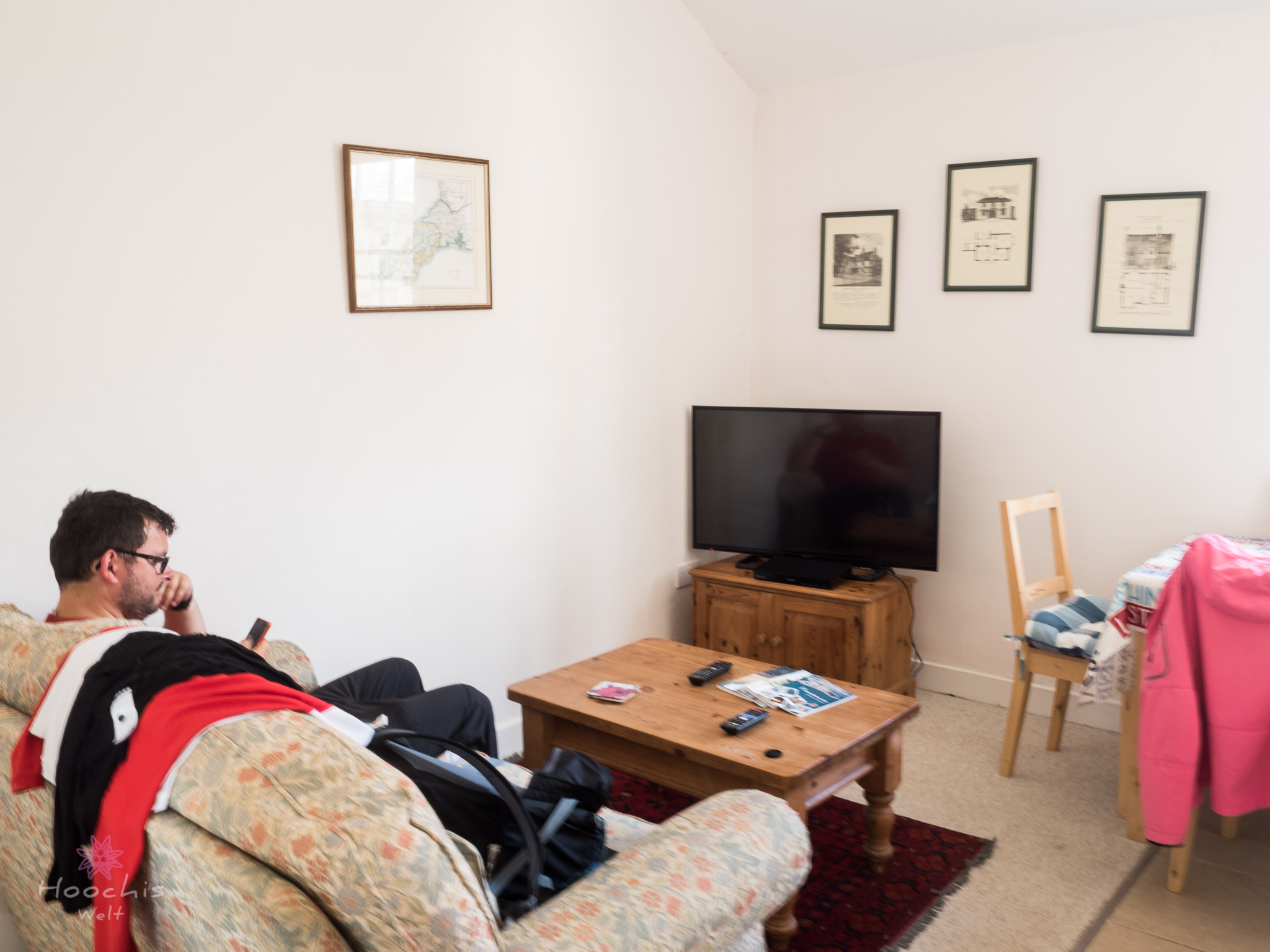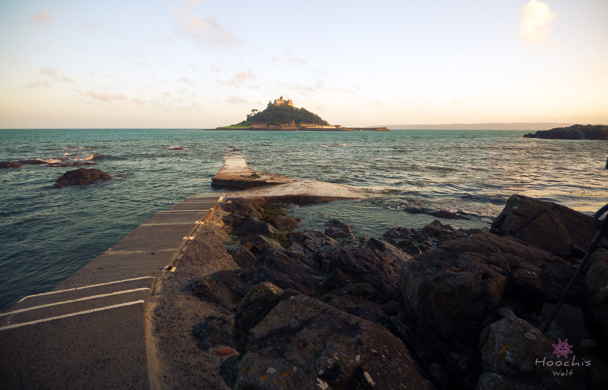 Unser neues Bett lag außerhalb von Penzance. Eine mega Hütte sag ich euch! Ich musste schon staunen, als ich die Pferde vor der Haustüre sah. Und als uns der Hausherr noch ein Appartment im Trereife House mit King Size Bett als unsere neue Unterkunft zeigte, war es aus bei mir. 🙂 Das war soooo mega! Und eine Badewanne gab es auch. Da nahm ich mir vor, dass ich fett in die Wanne liegen werde, wenn wir abends zurück kamen. Nachdem wir unsere Räumlichkeiten verwüstet hatten, gingen wir zu Fuß nach Newlyn und liefen am Meer entlang nach Penzance. Irgendwo dazwischen auf den Steinen machten wir eine Pause und futterten unsere mitgeschleppten Brote auf. Anschließend liefen wir wieder zurück, machten ein kurzes Nickerchen und fuhren dann zum St. Michael´s Mount.
