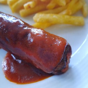 Wer es schärfer möchte, kann statt Tomatenketchup einen Curryketchup nehmen.