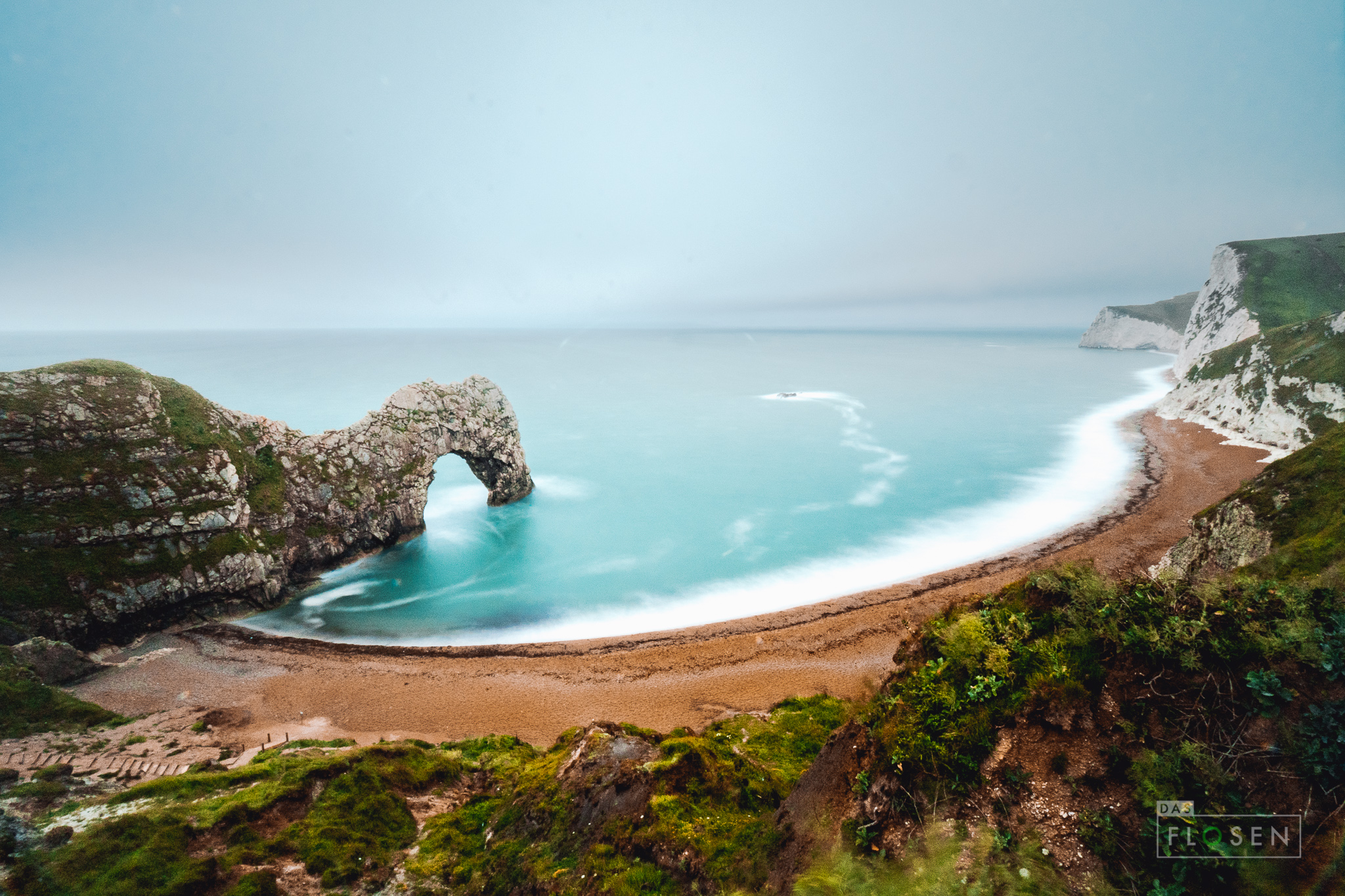 Für uns wurde es nun Zeit die Rosamunde Pilcher Pullunder überzuziehen. Der vor Schleim triefende Kitsch konnte beginnen. Leider oder auch zum Glück, spielte uns an jenem Tag das Wetter einen Streich. Wir wanderten an diesem regenreichen Tag bereits im Dartmoor umher (dazu komme ich später, weil es westlich von Exeter liegt) und entschlossen uns gegen Abend für die zweistündige Fahrt ans Durdle Door. Anders hätten wir es zeitlich nicht mehr untergebracht.