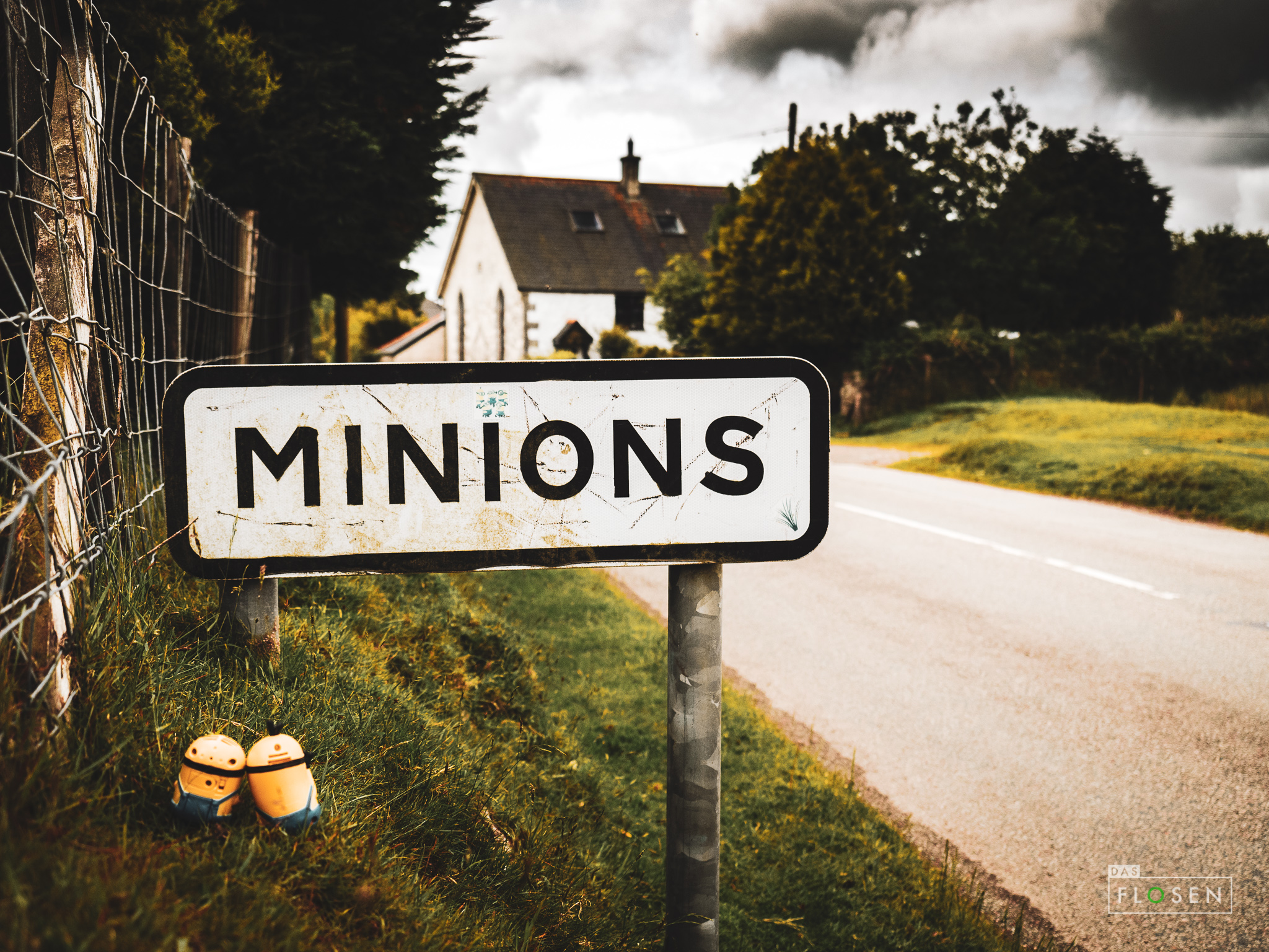 Heimlich still und leise hatten sich ein paar Minions in unsere Koffer geschmuggelt. Ihr wisst schon. Diese kleinen gelben tollpatschigen Dinger, die stets auf der Suche nach einem neuen „Meister“ sind. Als wir das höchstgelegenste Dorf in Cornwall passierten, wussten wir auch weshalb. Die kleinen hüpften beim passieren des Ortsschildes direkt aus Hoochi’s Friese und rannten davon. Ich konnte gerade noch meine Kamera packen und ein paar Aufnahmen schießen. Machts Gut Ihr Zwei!