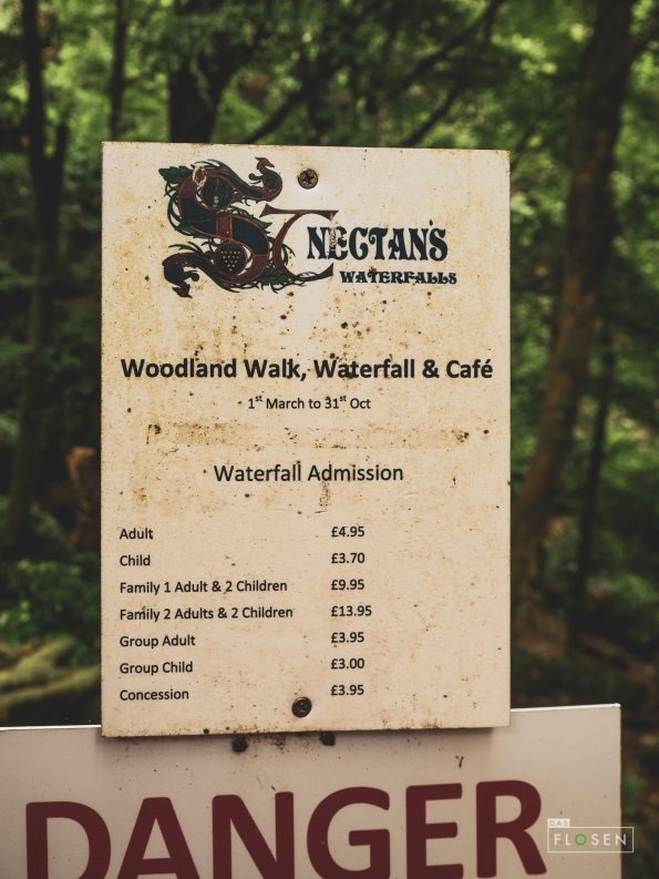Zunächst aber fuhren wir 2 x daran vorbei. Nicht weil mein Navigator auf dem Beifahrersitz versagt hatte, sondern weil dort nur so ein Zettel klaffte, auf dem mit Schriftgröße 12 vermerkt wurde, dass es sich hierbei um einen Parkplatz und dem Ausgangspunkt zum Wasserfall handelte. Eiei. Diese Briten.