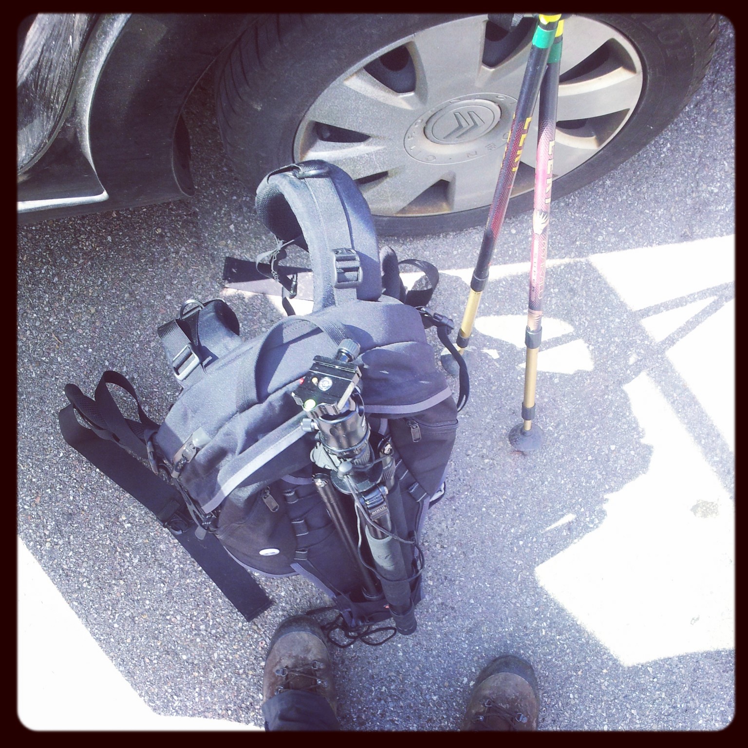 Ich sollte mich dem ersten „Höhepunkt“ der Tour nähern. Merke: Nach einem kräftigen Schluck aus der Pulle, sollte man immer den Verschluss kontrollieren. Ich hatte den Verschluss 1mm schief aufgedreht und lief weiter. Nachdem es dann doch relativ feucht im Bereich meines Hintern wurde und meine Schweissergüsse sich aber eigentlich noch in Grenzen hielten, wurde ich misstrauisch. „Ja *PIEP*! Leck mich doch am *PIEP*. Herrgott *PIEP* *PIEP* *PIEP*“ Es war passiert. Mein Daypack samt Fotobereich stand unter Magnesiumwasser. Kamera, Objektive, Zubehör, Tauschklamotten, Brotzeit. Einfach alles! Der Supergau! Horror! Totalschaden! Mein Body hats gut verkraftet, die Dichtungen am spritzwassergeschützten Gehäuse hielten. Selbst das Akkufach blieb trocken. Die Objektive sind nicht vollgelaufen, sondern waren nur äußerlich feucht.