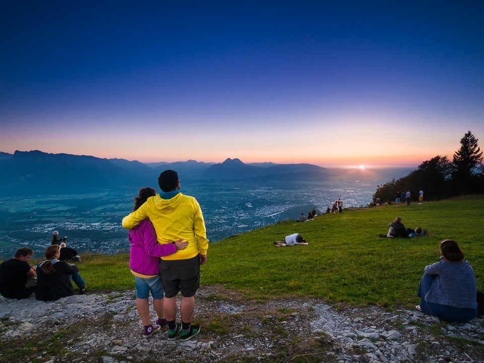 Die Klamm war Geschichte und es ging zurück in Richtung Salzburg. Der Himmel war an jenem Tag klar, also stand nochmal der Gaisberg auf dem Plan. Sonnenuntergang! Kitsch! Genießen! Zusammen mit einigen anderen Sonnenuntergangsgenießern nahmen wir an diesem Spektakel teil. Einfach herrlich dieser Anblick. Mehr kann ich dazu gar nicht sagen, schaut es Euch in den Ergebnissen an.
