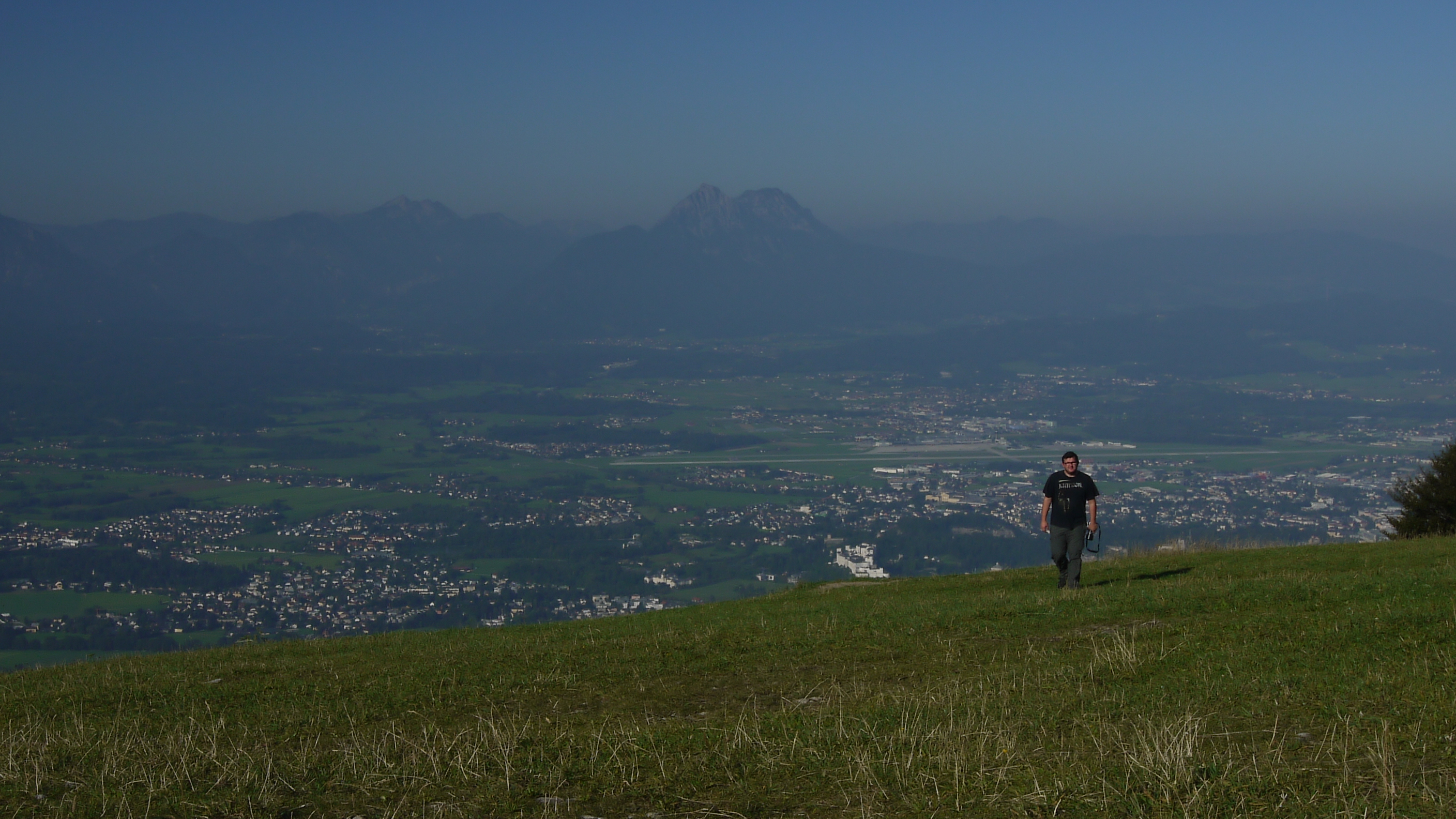 Am frühen Morgen ging es erstmal zusammen mit „Hoochi: Meine Welt“ auf den Gaisberg (1287m) bei Salzburg in Österreich. Morgenstimmung tanken. Der Gaisberg liegt direkt am Fuße der Stadt Salzburg und wird im Volksmund auch als „Salzburger Hausberg“ bezeichnet. Eine großzügig ausgebaute Straße führt hinauf bis auf das Gipfelplateau, von dort aus man einen herrlichen Blick über das komplette Umland genießen kann. Menschen mit einer blühenden Phantasie – wie ich – würden sogar behaupten, man kann bei perfekten Wetter den gut 200KM entfernten Chiemsee erkennen. Und glaubt mir, es war der Chiemsee 🙂