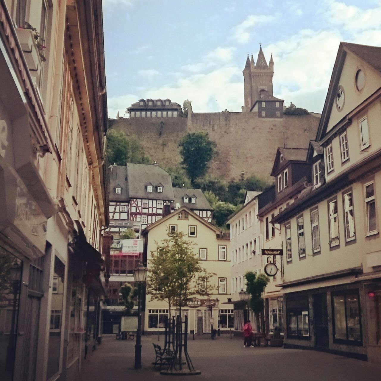 Während meines einwöchigen Exils im Land-Dill-Kreis (LDK) erkundete ich auch noch die Burganlage selbst. Leider war diese zur Hälfte mit Bauzaun umgeben und gesperrt. Zufällig traf ich dort den redseligen Hausmeister am Fuße der Burg. Er führt wohl nicht viele Gespräche und so kam es, wie es kommen musste. Ich wurde knapp 45 Minuten zugequatscht, während sein Motor im Auto schon lief. Er wollte mir ja nur kurz etwas mitteilen. Neben lauter Nonsens waren aber durchaus auch sehr informative Dinge dabei. So erzählte er mir vom Sturz eines Jugendlichen von vor ein paar Wochen, der den Turm erklettern wollte und nach unten fiel, als die Alarmanlage los ging. Der Tatsache, dass beim letzten Deutsch-Französischen Burgfest die halbe Mauer zusammen brach, weil diese der Druckwelle der abgefeuerten Kanonen nicht standhielt. Und natürlich, dass das komplette Gebiet unterkellert sei und Teile der Katakomben von den Anwohnern am Berg als Keller genutzt wird.