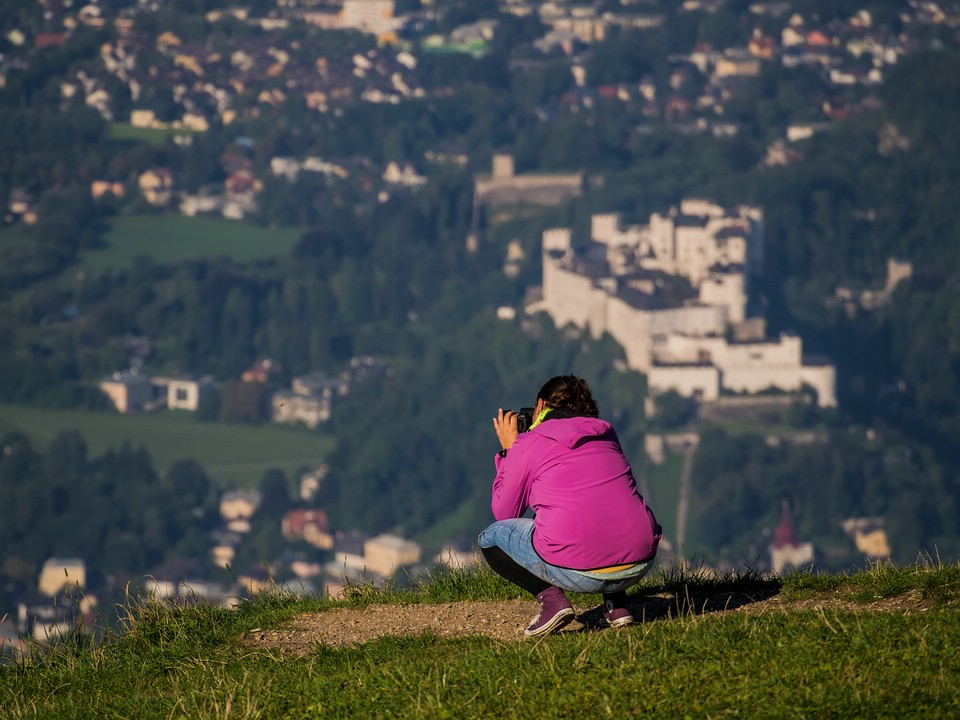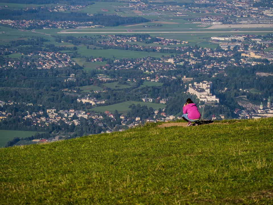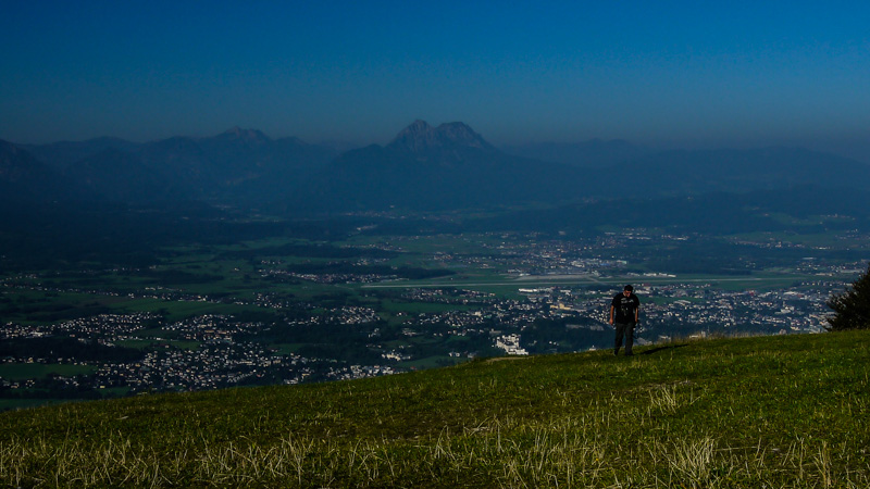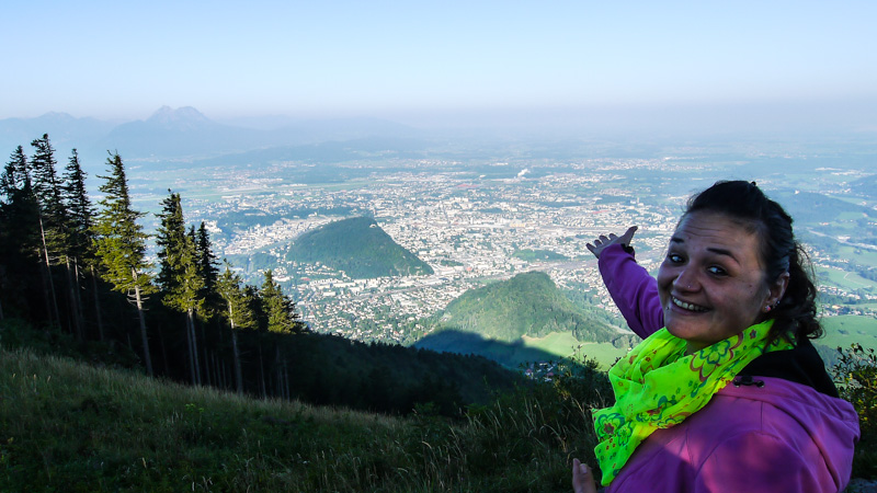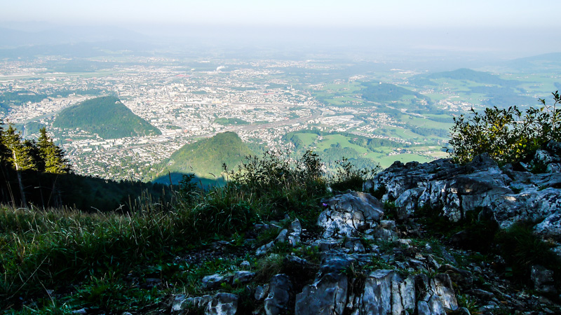 Nach etwa einer Stunde Fahrt konnten wir die geniale Aussicht auf Salzburg geniessen. Und die Berge. Leider war es noch trüb und man konnte nicht die gesamten Berge sehen. Aber es reichte aus, um mich zu überwältigen.