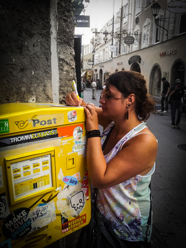 Dort kaufte ich dann auf die Schnelle ein Mitbringsel für meine Schwester, die sich zu Hause um meine Tiere kümmerte und einen Kugelschreiber. Ich musste ja unbedingt noch geheime Post aus Salzburg verschicken. Den extra eingepackten Kulli, ließ ich ja in der Pension liegen…