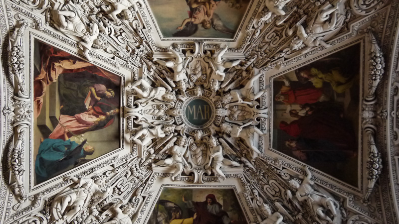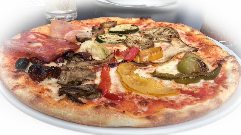 Zuerst liefen wir die Altstadt entlang und begutachteten die tollen alten Fassaden, die mit Stuck versehen sind. Um 13 Uhr gab es im Ristorante Palazzo Mittagessen. Flo entschied sich für Lasagne und Salat und ich mich für eine Pizza „Antipasti“. Darauf waren Pilze, Artischocken, Zuchhini, Salami, Schinken, Auberginen und Käse. Sehr, sehr lecker.