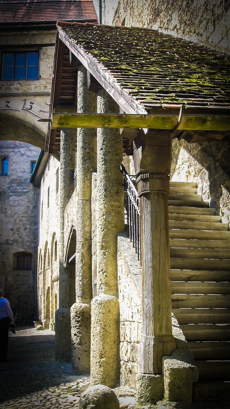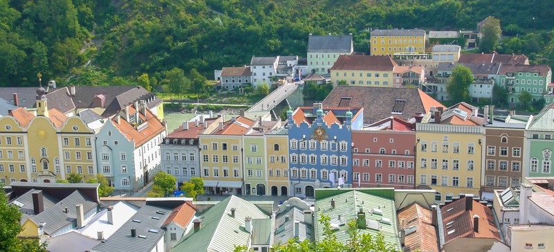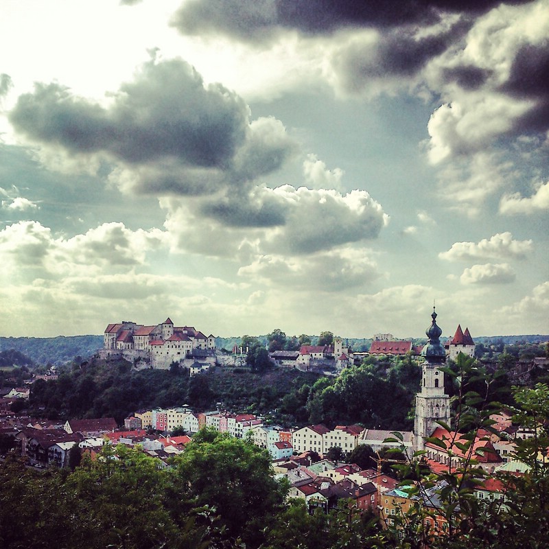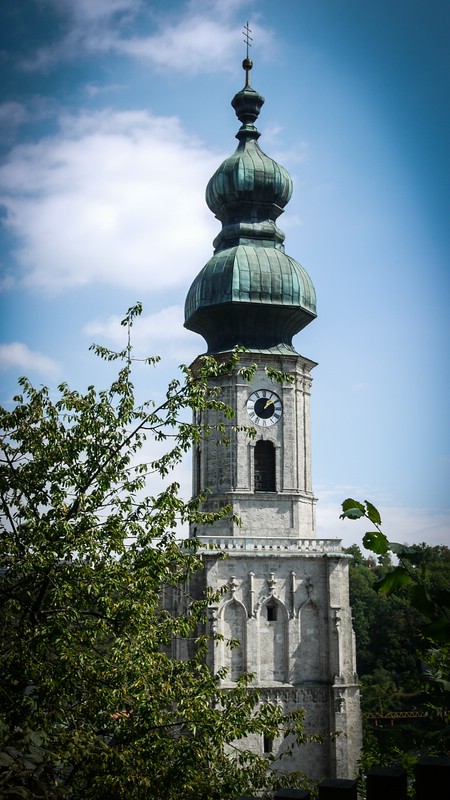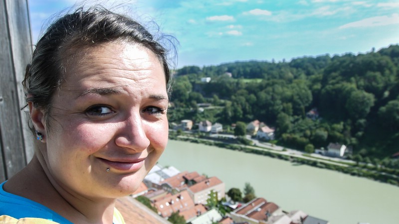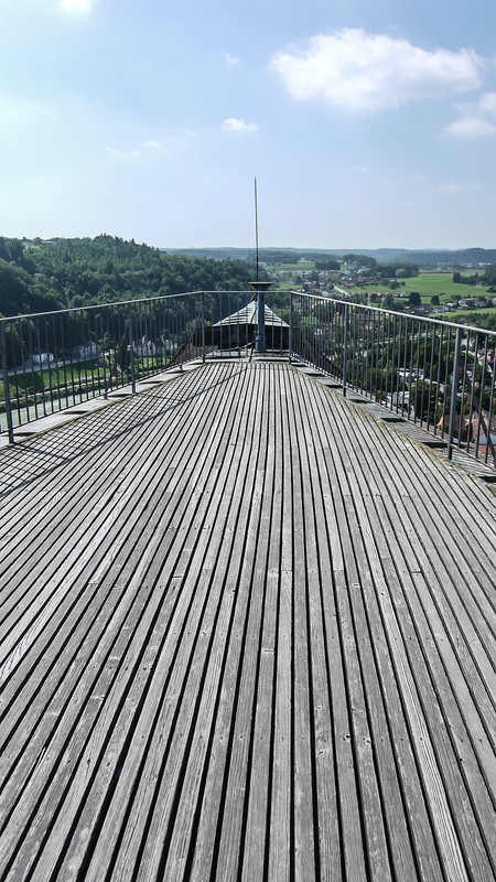 Anschließend stiegen wir die 62 Treppen nach oben zur Aussichtsplattform auf dem Dach des Palas und hatten eine gigantische Aussicht über die Altstadt von Burghausen und die umliegende Gegend.