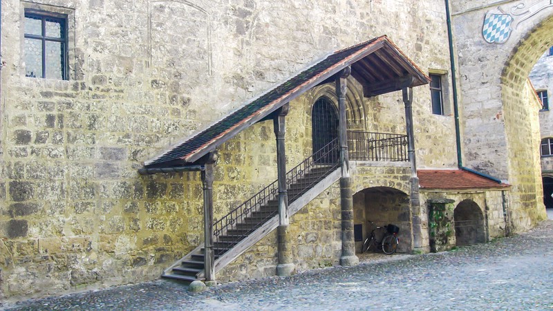 Dort besuchten wir zuerst den „Dürnitzstock“, der jetzt als Besucherzentrum dient. Dort bezahlt man auch den Eintritt für die Staatsgalerie Burghausen, die sich im 2. und 3. Stock des Palas befindet. Aber bevor wir da ankamen, besichtigten wir den 1. Stock und somit die ehemaligen herzoglichen Wohnräume.
