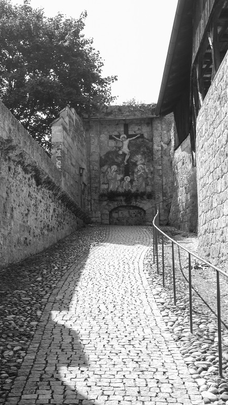 Direkt von der Burg aus führte ein Fußweg in die Altstadt, die ich persönlich nicht verpassen durfte. Der Weg war steil und mir war klar, dass wir diesen Weg wieder nach oben laufen mussten, um an den Parkplatz und das Auto zu gelangen. Ich verschwendete vorerst keinen weiteren Gedanken daran, sondern freute mich auf die alten Häuser und vorallem die Kirche.