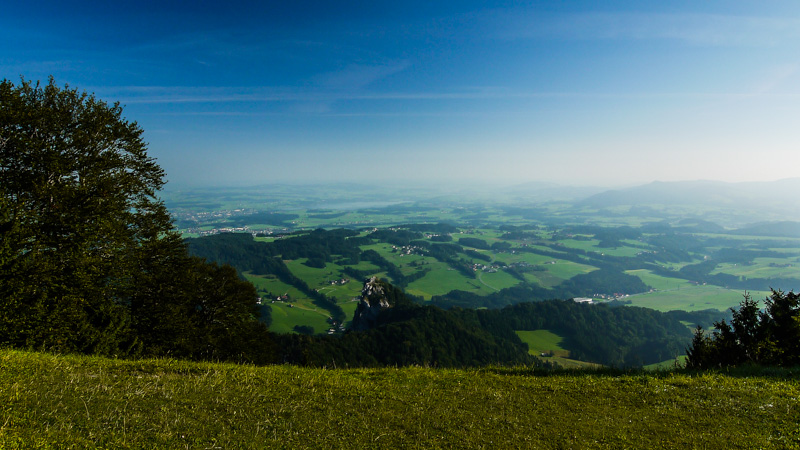Papp-satt bezahlten wir die Rechnung und wir stiegen in das treue Gefährt ein. Wir fuhren erneut zum Alpenblick, in der Hoffnung, dass man heute die Alpen besser sehen konnte. Was leider nicht der Fall war. Dafür sahen wir einen wunderschönen Sonnenuntergang.