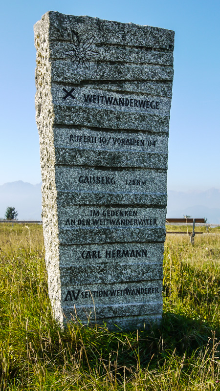 Wir liefen auf dem Gipfel herum und meine gute Laune wurde etwas getrübt, als ich einen Erinnerungsstein endeckte, der mit Blumen und Kerzen geschmückt war. Vor kurzem starb da leider ein Paraglider.