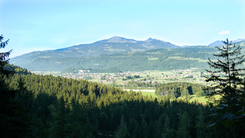 Endlich oben angekommen, setzten wir unseren Weg fort und wir fuhren über den alten Grenzübergang nach Österreich zum Aussichtspunkt Duttendorf. Von dort aus kann man die gesamte Burg sehen. Fotografieren kann man sie nicht, da sie einfach zu lange ist und nicht auf´s Bild passt. 🙂