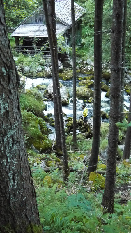 Zum Gollinger Wasserfall. Eines von Flo´s Zielen. Da gibt es eine alte Mühle, die er unbedingt knipsen musste/wollte.