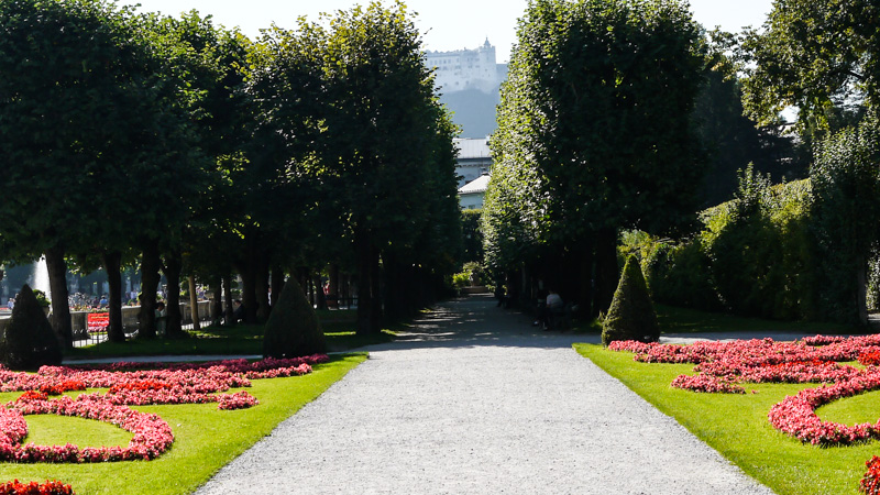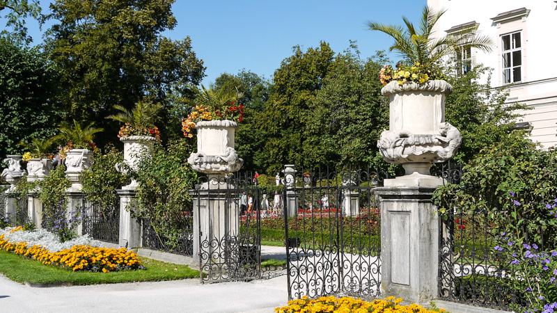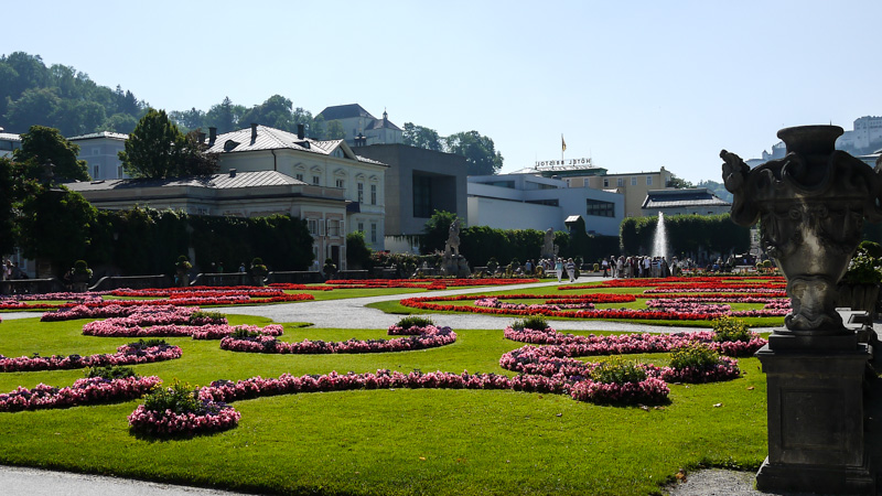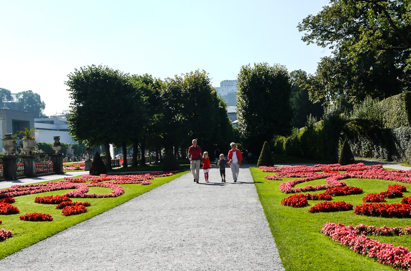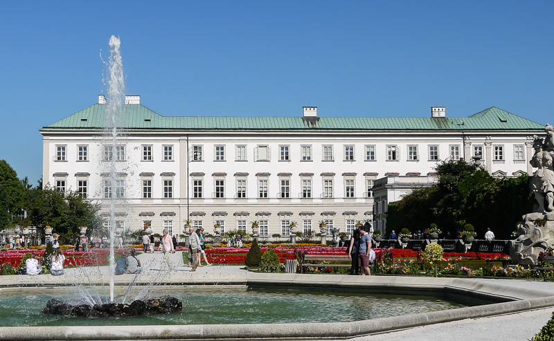 Nachdem wir unsere Finger geputzt und noch etwas im Mineralwasser geduscht hatte (durch das Schütteln in meiner Tasche blubberten die Blubber über), gingen wir zum Schloss Mirabell. Es musste natürlich alles begutachtet werden: den Pegasusbrunnen, Mirabellgarten, Rosengarten, Springbrunnen, Mirabellbogen, Heckentheater.