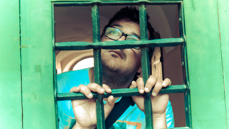 Ich war schneller fertig, als mein Göttergatte, wartete dann und schaute mich schon mal um. Und machte dieses geniale Foto von ihm: