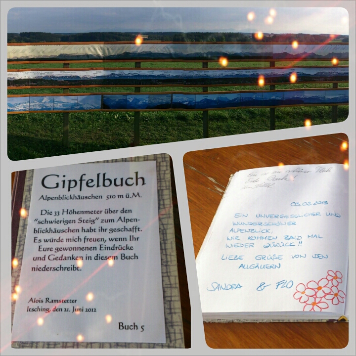Der Alpenblick ist eine Panoramaaufnahme der Alpen. Total super gemacht. Und vorallem gemütlich. Da oben kann man völlig die Zeit vergessen. Zu erwähnen ist hier noch die Entstehung dieses Alpenblickhäuschens. Wen es interressiert, kann sich auf der Homepage informieren.