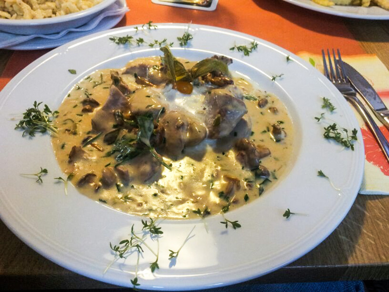 Überpünktlich um 12 Uhr kamen wir dann bei Flo zu Hause an, wo wir dann Mittag gegessen haben. Rindsroulade mit Speckknödel. Hatte Flo´s Mama für uns hergerichtet. Wir mussten es nur noch erwärmen.