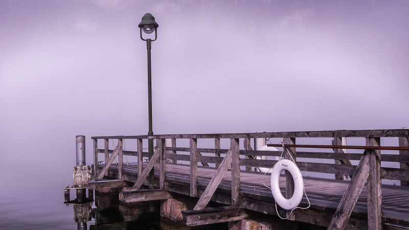 Da wir den Tipp bekamen zuerst Richtung Salet zu schippern machten wir das auch. Es war noch so trüb, dass man keine Bergwände sehen konnte. Man konnte nicht einmal sehen, wohin wir fahren. Nur dicke Nebelsuppe. Deshalb war es auch um so spannender, ob es mit dem Echo vom Königssee klappen würde.