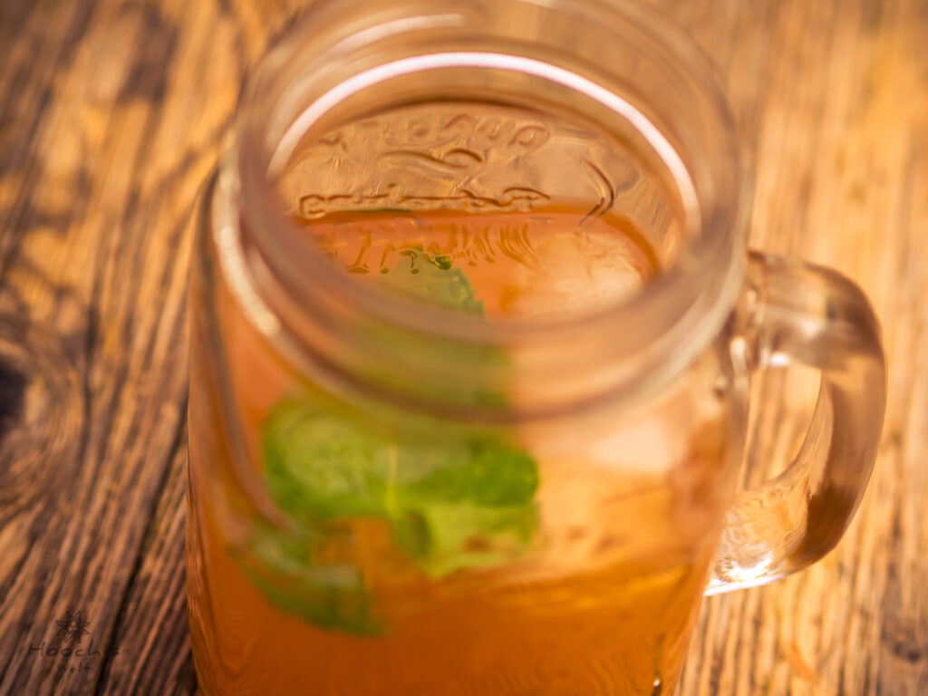 Eiswürfel erst ins Trinkglas geben, sonst wird der Eistee wässrig.