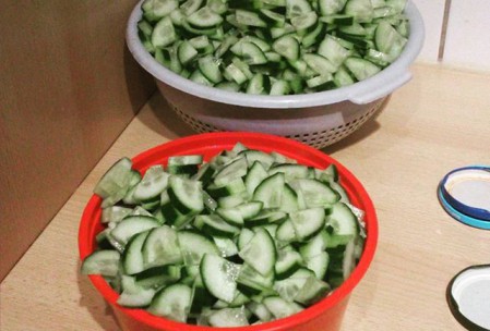 Gurken säubern (falls es die normalen Gurken sind, dann gurken Schälen und in mundgerechte Stücke schneiden).