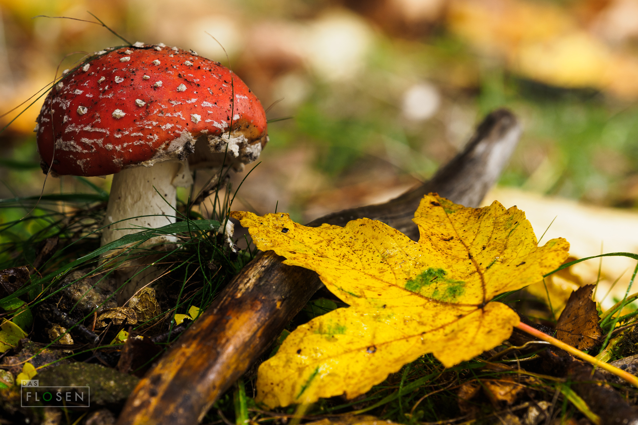 Dann wollen wir mal loslegen. Die stets Aufmerksame Hoochi vernahm des Weges einen Fliegenplitz. Stehend unter einer Bank. Letztes Jahr hatte ich gefühlt Wochen nach einem Pilz gesucht und keinen schönen gefunden.